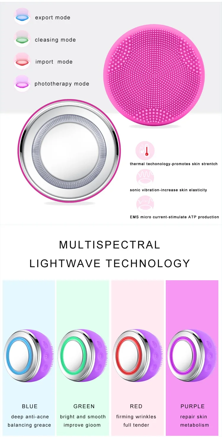 EMS светодиодный фототерапия массажер для лица Электрический силиконовый очиститель для лица щетка