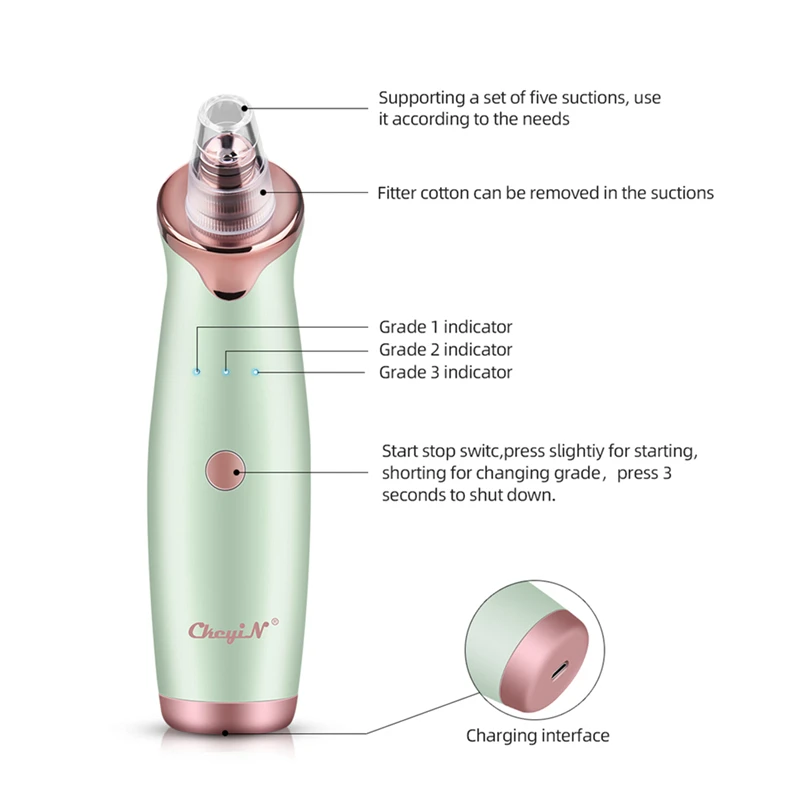 CkeyiN Удаление угрей вакуумный Электрический Очиститель пор для лица удаление акне микродермабразия всасывание красоты устройство 5 всасывания головы 51