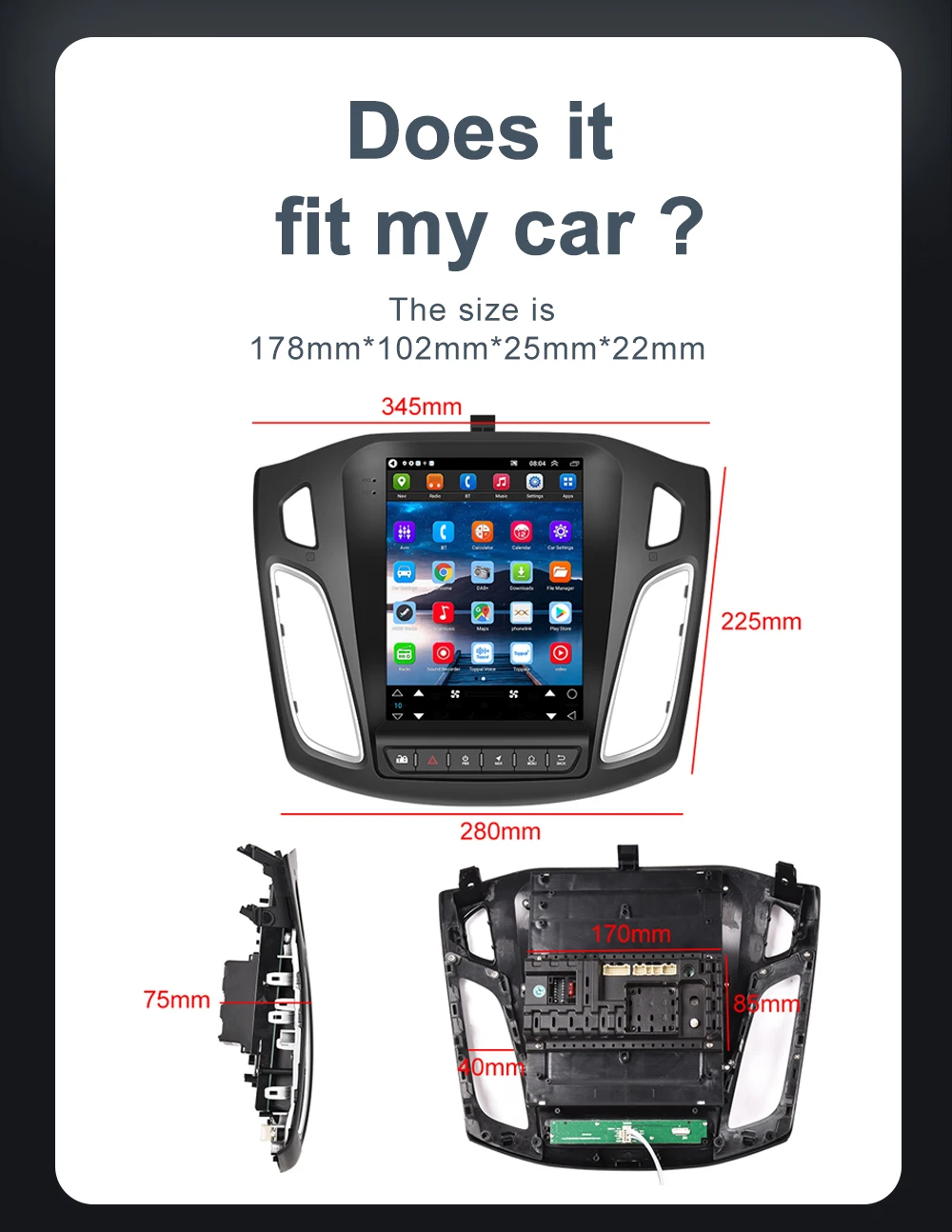 Автомагнитола для Ford Focus 12-18, 9,7 дюйма, 2 + 32 ГБ, Android 1080