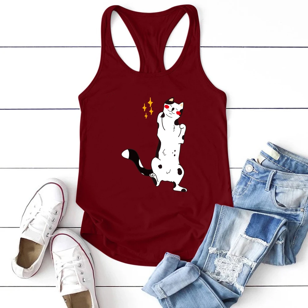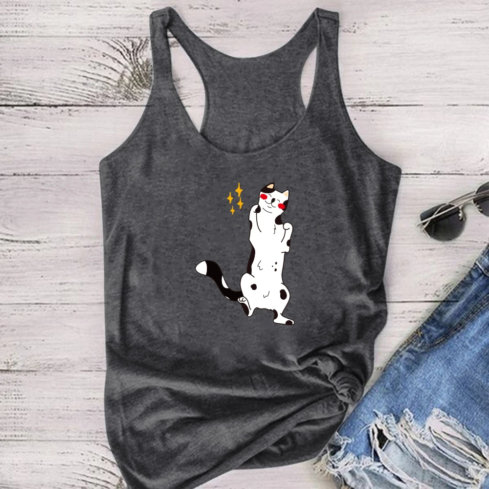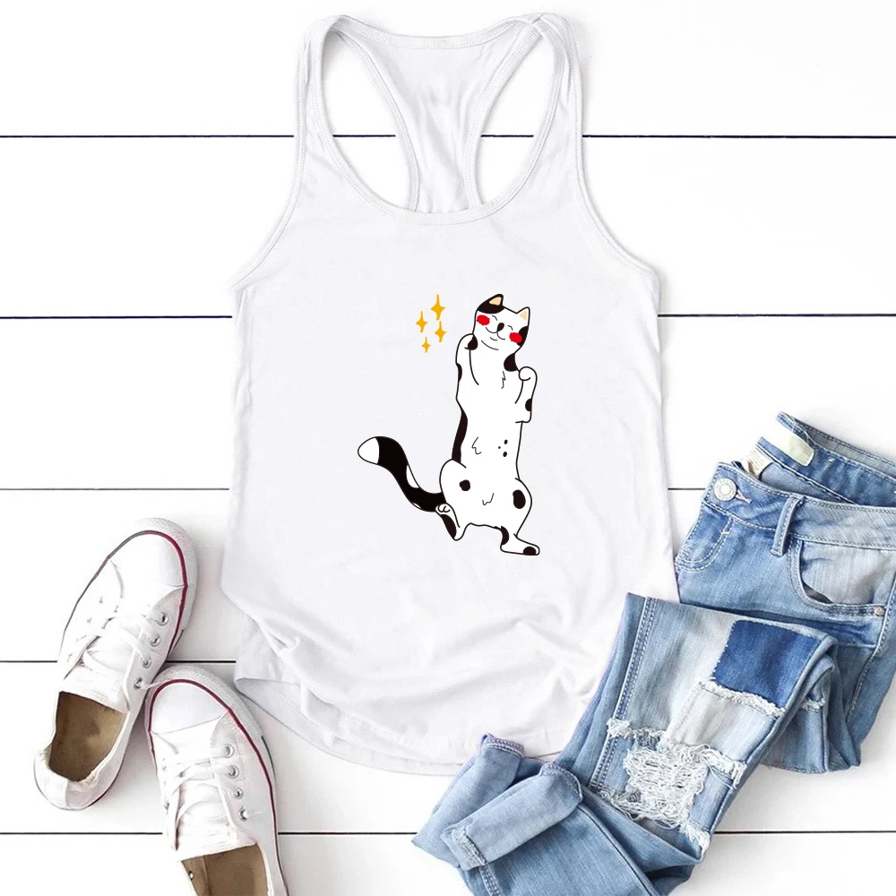 Женские майки в стиле Харадзюку 2021, футболка с принтом мультяшного кота, женские летние Забавные топы без рукавов для дам, жилеты, свободные майки, Майки