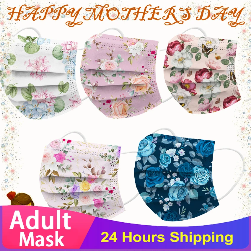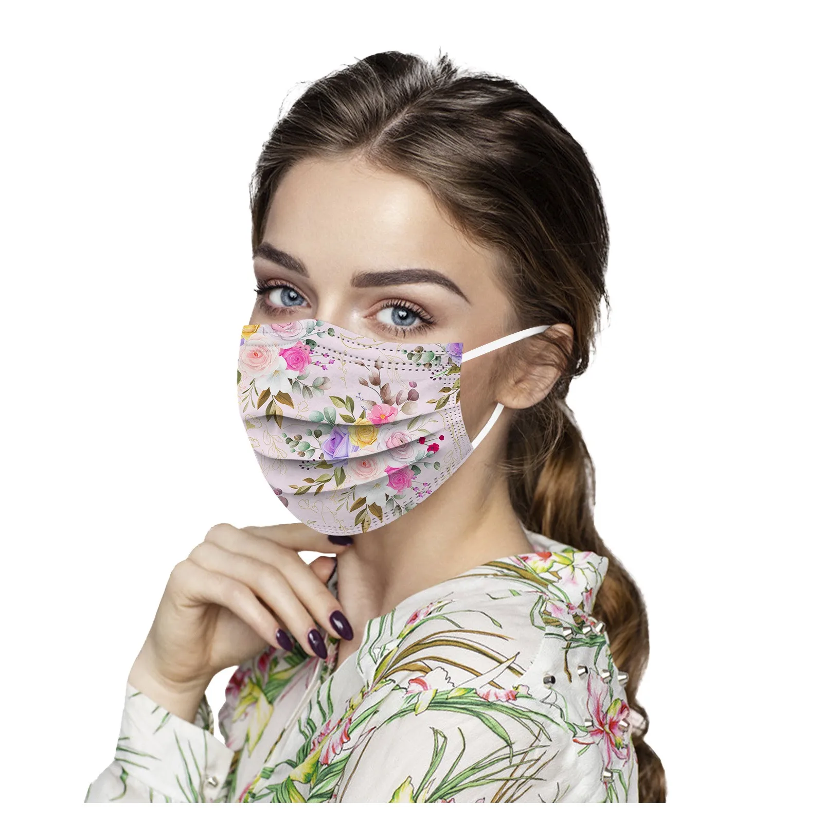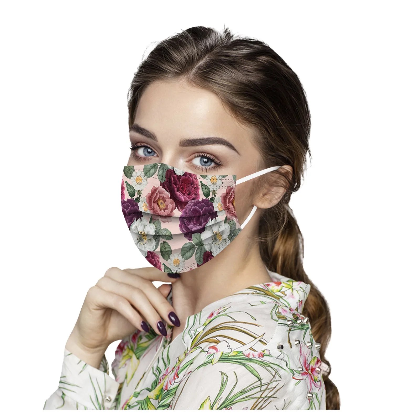Маски для взрослых с цветочным принтом, одноразовая маска для лица ...