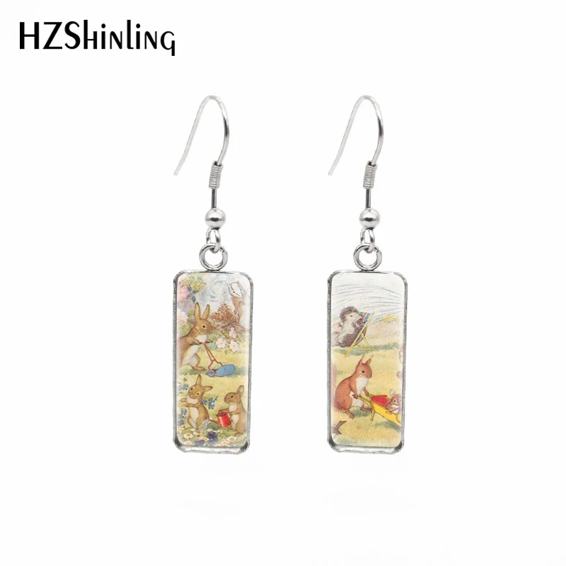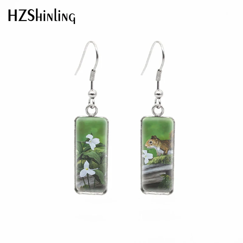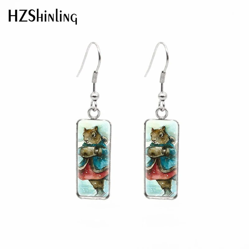 Забавные прямоугольные серьги в виде белки, с изображением животных, в виде крючка, Стеклянные Кабошоны, ювелирные изделия ручной работы, 2021