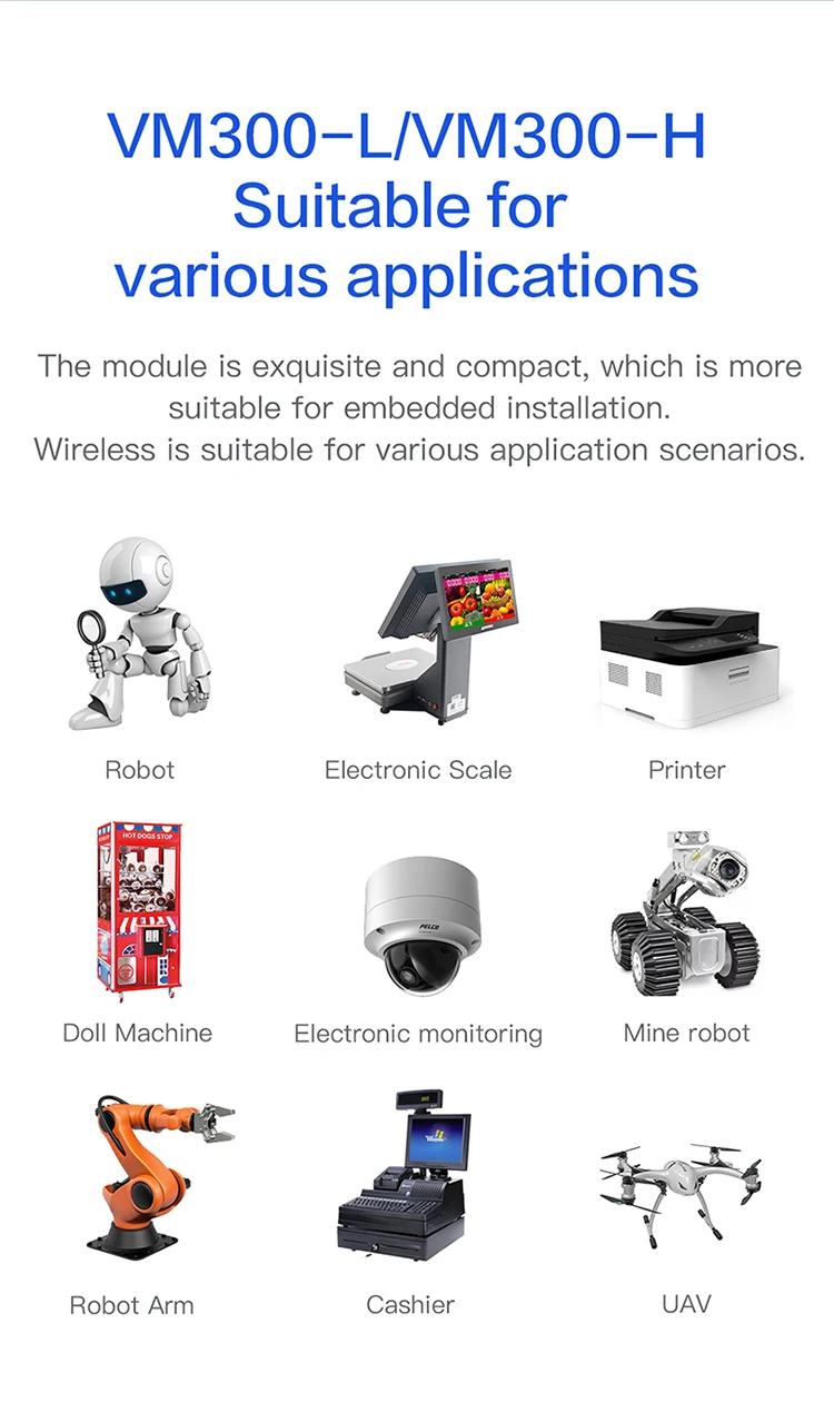 1 、 Wi-Fi Рабочая частота: 2,4 ГГц, 300 Мбит/с скорость передачи данных.2. Выходная мощность модуля RF :14.5dbm-16dbm.3. Используйте оригинальную технологию контроля температуры D/A с автоматической частотой (TAFC), убедитесь в прочной стабильности, чтобы гарантировать, что сигнал Wi-Fi не выпадает.4. Поддержка режима 802.11b/g/n. Источник питания: 5 В/1 А5. Рабочая температура окружающей среды:-25 ℃ --- 55 ℃.1. Два режима работы с программным управлением: режим маршрутизации, режим моста + повторителя.2. Поддержка интеллектуального прозрачного моста, а также поддержка AP клиента и AP станции.3. Независимая Аппаратная обработка данных, не потребляет ресурсы хост-системы, без установки каких-либо драйверов4. В мостовом режиме, обманчивая конфигурация для облегчения вторичного развития, имплантированного в другие хост-системы.5. Встроенные службы Веб-конфигурации, доступные параметры модуля настройки через Интернет.6. Встроенные услуги мониторинга сокетов, используемые для управления двумя выходами GPIO (1.5A), девять видов состояния контроля GPIO для облегчения вторичного развития и расширения функций.7. Поддержка технологии VDNS, в мостовом режиме, может быть настроена путем входа на страницу входа в домен, решить проблему, которая настраивает и вторичное развитие. 1 * VM300-L + USB и ethernet кабель (30 см)1 * руководство на английском языке1 * упаковочная коробка