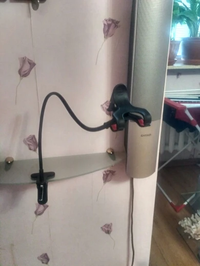 Продукт пухленький, и зажим стола не достаточно силен, чтобы его можно было положить горизонтально на стол, чтобы держать все в руке. Зажим телефона достаточно сильный, и гибкий стержень достаточно приличный.