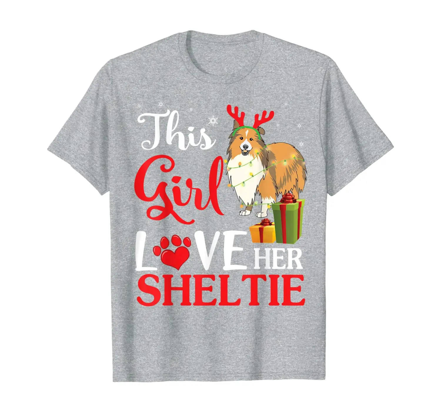 Рождественские подарки и снег, эта девушка любит ее, шелти, Рождественский костюм, футболка