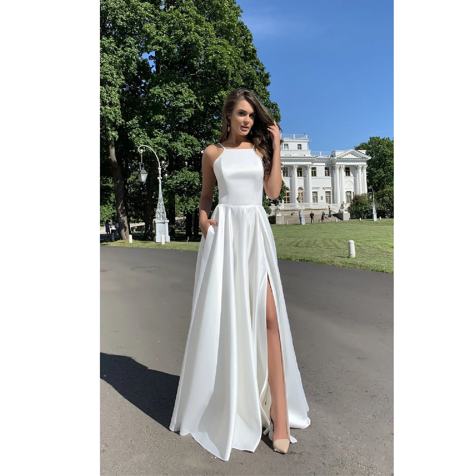 Вечерние платья с высоким разрезом, элегантное атласное вечернее пл...