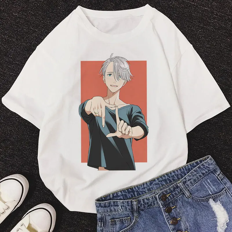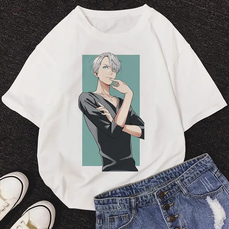 Yuri on Ice толстовки для женщин аниме футболка с принтом Виктора Женская японская комиксная одежда летняя футболка большого размера топы футболки