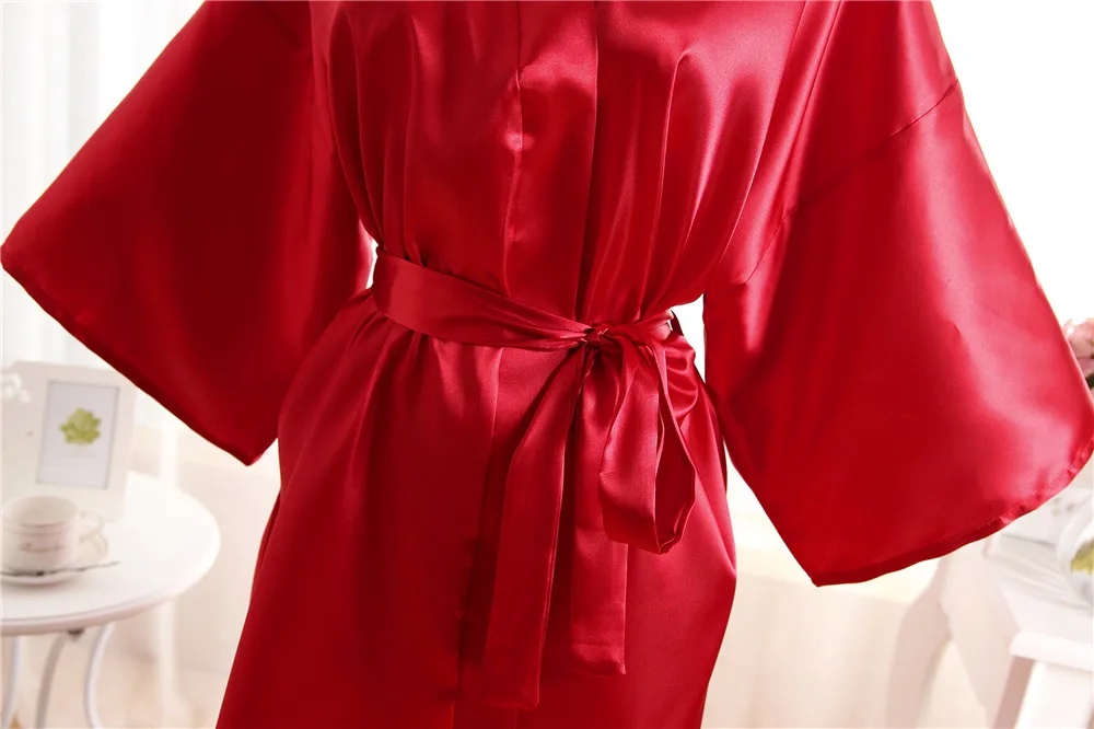 Лидер продаж, летнее женское кимоно, мини-халат, красная банная рубашка из искусственного шелка, юката, ночная рубашка, одежда для сна, пижама Mujer, один размер Mdn001