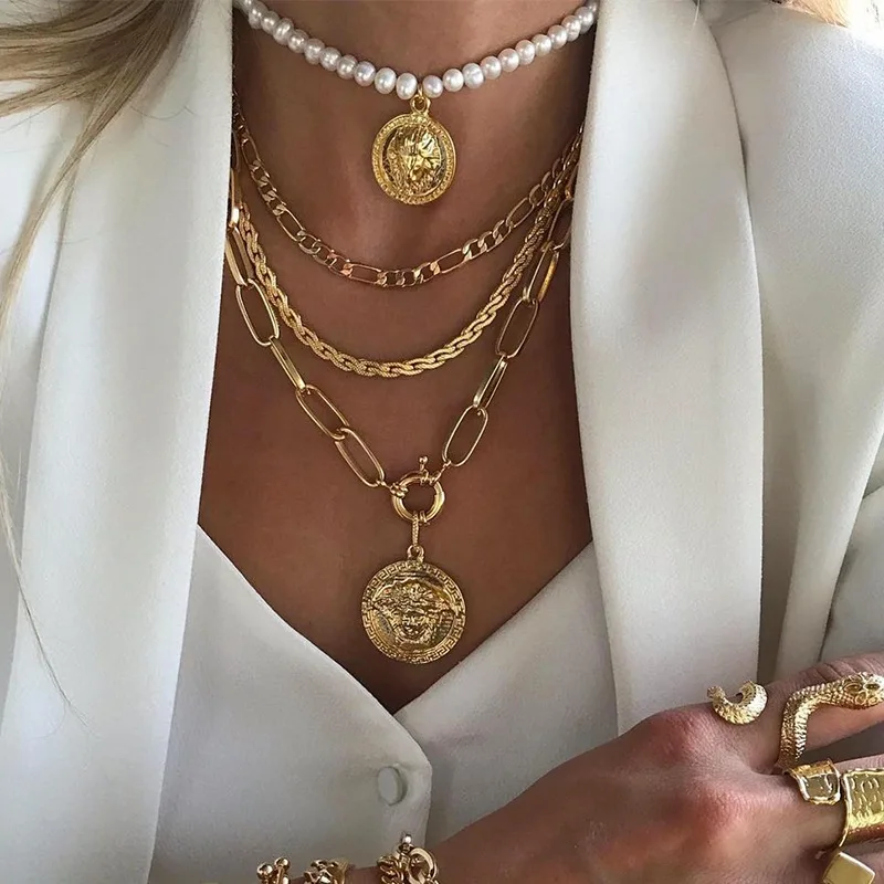 Многослойное металлическое женское ожерелье в стиле хип-хоп, многос...