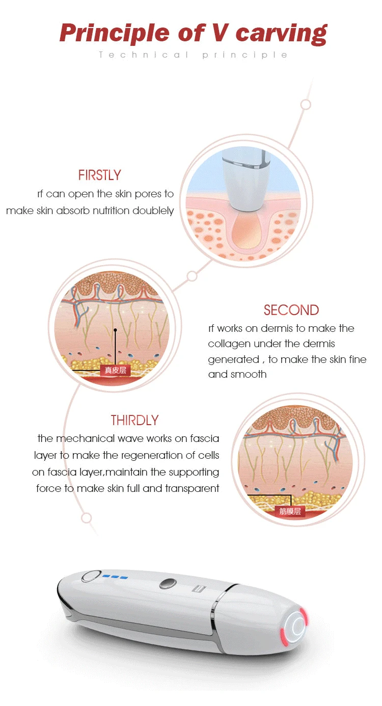 Что такое резьба по радиолокационной линии?Радар V резьба-это ручка HIFU для лифтинга лица, удаления морщин, затягивания кожи, формы лица, формы шеи... Это новый дизайн для домашнего использования beauty machine на основе технологии механической волны и RF принципа. Он имеет эффект лица, свинцово-кислотного продукта, способствует регенерации фасциевого слоя и коллагена.Описание товараЭто Тип Мини V-max лицевой подъемной машины. Это новый дизайн для домашнего использования beauty machine на основе технологии механической волны и RF принципа. Он имеет эффект лица, свинцово-кислотного продукта, способствует регенерации фасциевого слоя и коллагена.Инструментальные преимущества:1. Глубина: непосредственно работает на SMAS2. Температура: неинвазивное стимулирование регенерации колледжа.3.Hifu: сфокусированный ультразвук работает только в области лечения, не причиняет вреда окружающим.4. Нет времени на восстановление: нет вреда для повседневной жизни.5. Не нужно делать операции.6. Удобно при обработке: энергия проходит через кожу, не повреждает.Руководство по эксплуатацииОперация на шее: мы предлагаем начать с линии шеи на пуговицах, от ключицы вдоль шеи, поднимающейся до челюсти, от двойного подбородка до горла. Область горла запрещена для использования, затем от двойного подбородка до лимфы вокруг, помните, что область горла запрещена; Пользователи могут осуществлять операции в 3-4 раза в зависимости от личной неполноты кожи. Операция на лице: интенсивность начинается с самых низких, от ягодиц до скул, затем от рта до ушей, с помощью манипуляции подъемом, последний шаг со стороны носа вдоль яблока, поднимается до висячих точек. Пользователи могут осуществлять операции в 3-4 раза в зависимости от личной неполноты кожи. Операция вокруг глаз: интенсивность начинается с самого низкого, от подъема скулы до виска вокруг, затем от угла подъема глаз до линии вокруг волос, помните, что верхнее веко и орбитальная кость запрещены. Пользователи могут осуществлять операции в 3-4 раза в зависимости от личной неполноты кожи. Операция на лбу: интенсивность начинается с самого низкого уровня, от подъема бровей до линии волос вокруг, подтягивания бровей посередине до дужек вокруг, подтягивания бровей до линии волос вокруг, от кнопки вверх, от офриона до висячих вокруг, мы предлагаем брови не делать этого; Пользователи могут осуществлять операции в 3-4 раза в зависимости от личной неполноты кожи.Примечание:Во время работы картридж не может оставаться в одной области, делая повторяющиеся операции, двигаясь с постоянной скоростью с самого начала, мы предлагаем регулировать интенсивность от самого низкого, затем в соответствии с зоной обработки для регулировки интенсивности, подстраивайтесь под максимальный допуск клиентов, во время операции, Вы будете чувствовать себя горячим, некоторые чувствительные области будут иметь ощущение небольшого укуса, после операции, если почувствуете боль и распухание в нормальной ситуации.Вывод:Для нормальной кожи, первые 5 раз мы предлагаем три дня один раз, после 5 раз операции, 5 дней один раз. Для чувствительной кожи, первые 5 раз, мы предлагаем 5-7 дней один раз, после 5 раз операции, 10-15 дней один раз, 8-10 раз один лечение. Вы можете спроектировать время лечения в соответствии с личной свободностью кожи. После операции может иметь разную ст