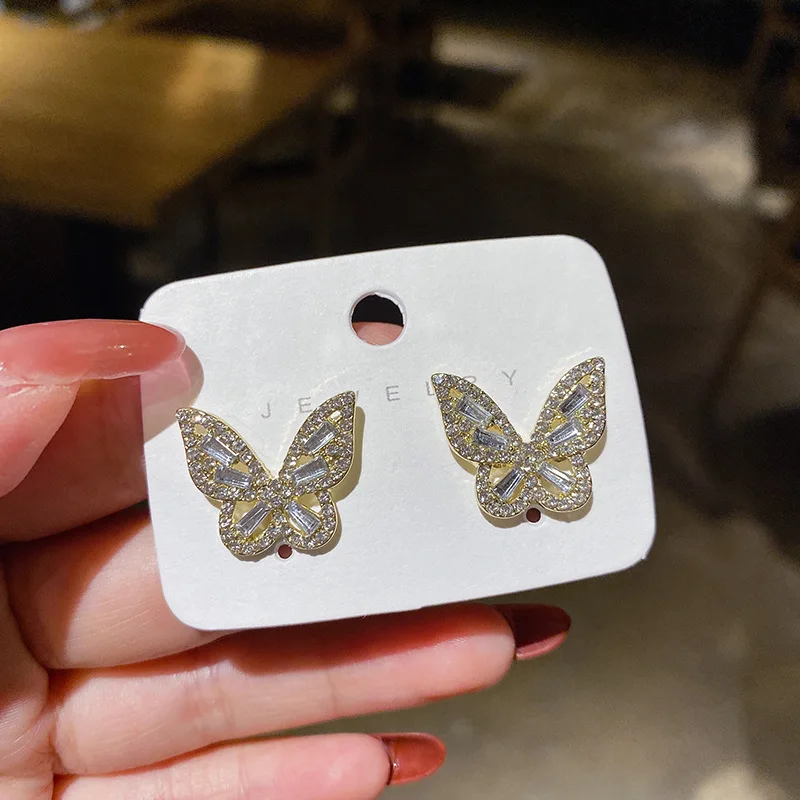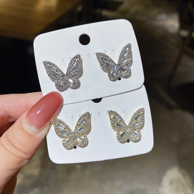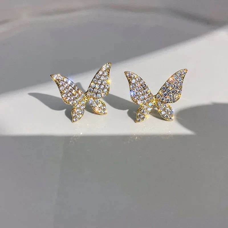 Женские серьги с бабочкой и цирконом, винтажные свадебные серьги