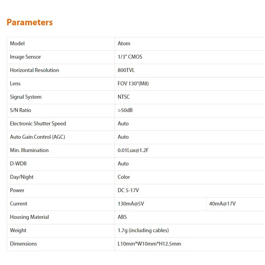 Товары включают:1 шт. RunCam Atom камера1 упаковка аксессуаров