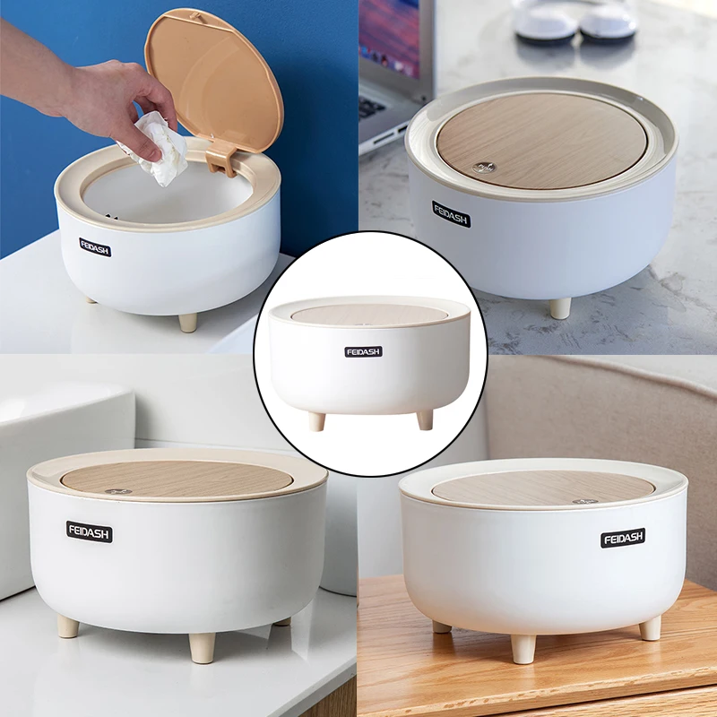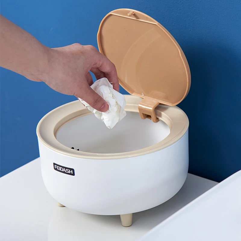 Настольная мини-корзина для мусора с крышкой, симпатичная прикроватная маленькая корзина для хранения