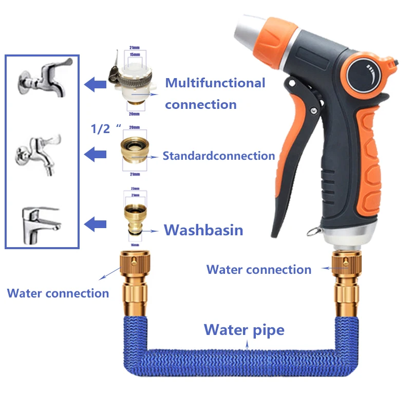 Шланг для мойки высокого давления 12, выдвижной шланг для полива ЕС, регулируемая насадка, растягивающаяся насадка для мойки автомобилей