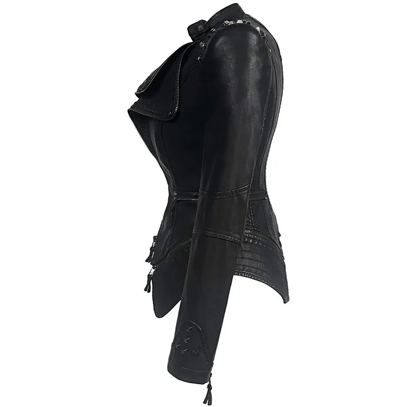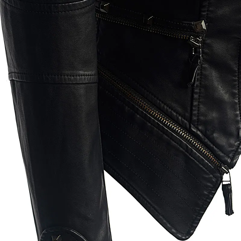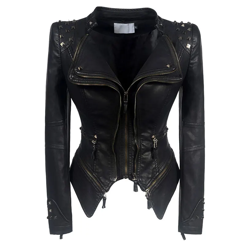 Женская черная укороченная куртка из искусственной кожи, приталенные куртки с длинным рукавом и заклепками из искусственной кожи в стиле панк-рок, одежда 6xl, куртка на молнии с заклепками