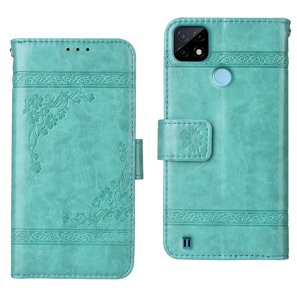 Кожаный чехол-книжка с цветочным рисунком для Realme C3 C3 Q3 i C11 C12 C15 C17 C20 C21 C25 8 Narzo 10 20 30 A Pro V5 V11 V13 V15 GT