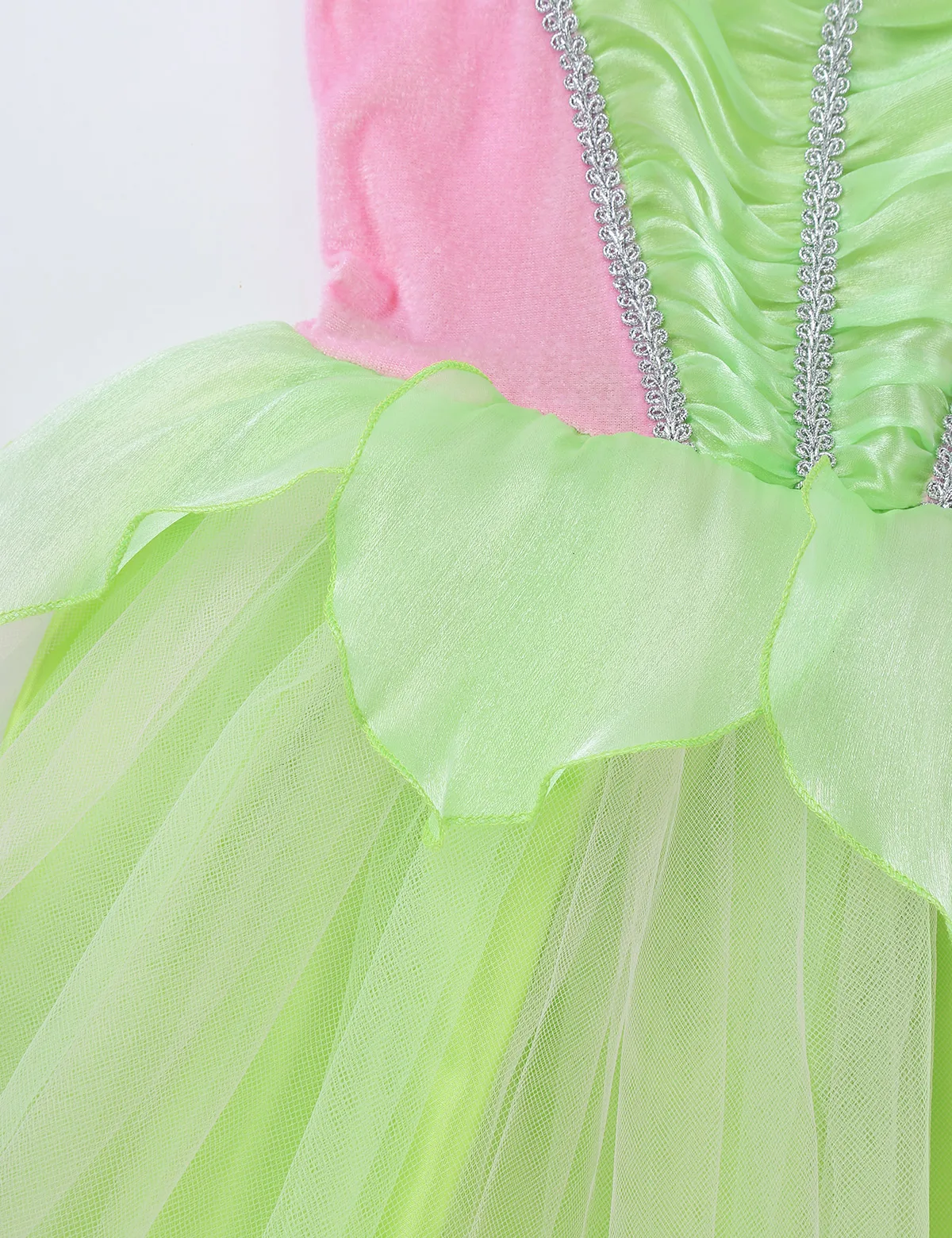 Особенности:Платье изготовлено из полиэстера, бархата и сетчатого материала, рекомендуется ручная стирка.Таблица размеров означает возрастные диапазоны для девочек, но они предназначены только для общего ознакомления.Эластичные бретельки, бархатный топ с узором спереди. Рюши спереди украшены серебряной плетеной отделкой. Натягивается На застежку.1 слой короткого накладки в форме листа прикреплен на талии спереди. Двухслойное платье, Верхний сетчатый слой, 1 атласная подкладка. Сверкающие крылья с эластичными лямками.Подходит для Хэллоуина, косплея, темативечерние НКИ, фотографии, праздников и т. д.