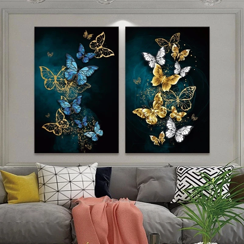 Современный плакат с голубыми золотыми бабочками, Минималистичная животная Картина на холсте, настенная Картина на холсте, домашняя роспись, декор для гостиной