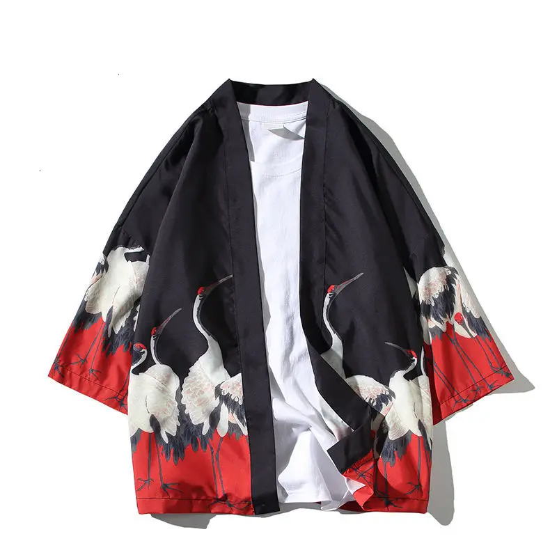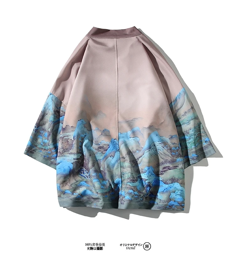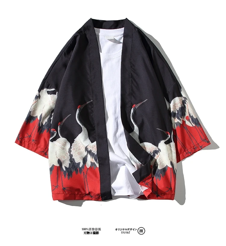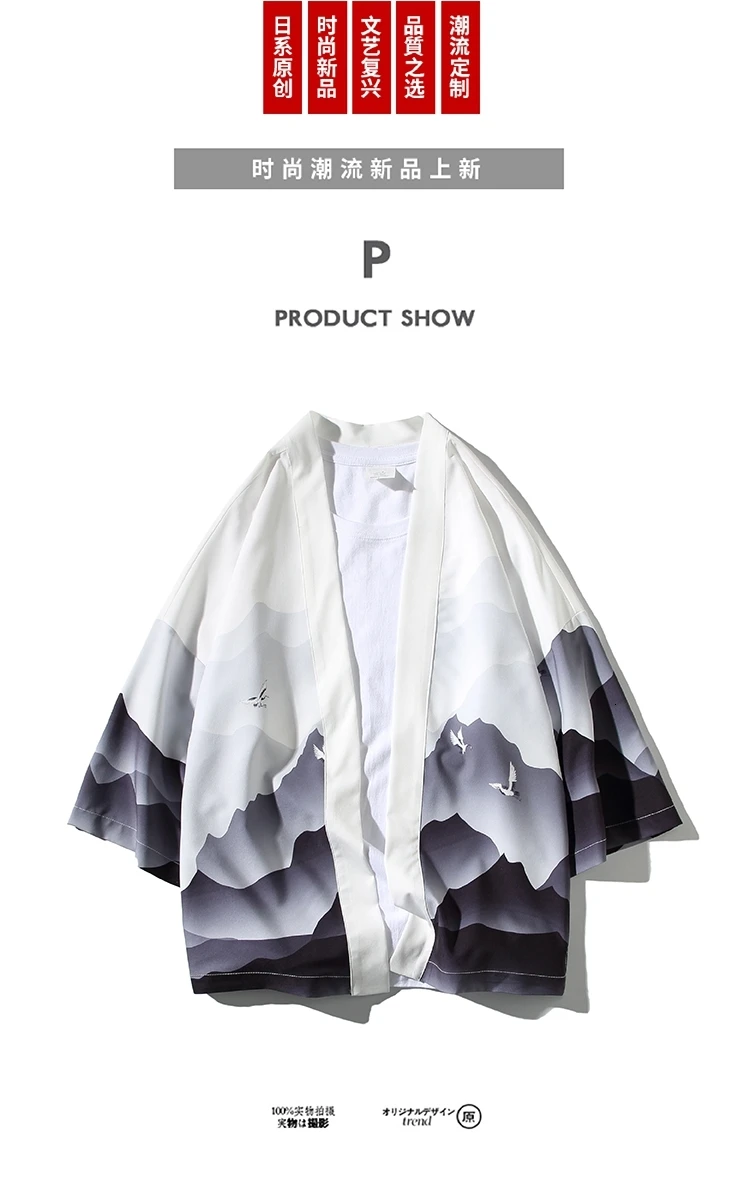 Кардиган-кимоно мужской короткий свободного покроя, модная уличная ...
