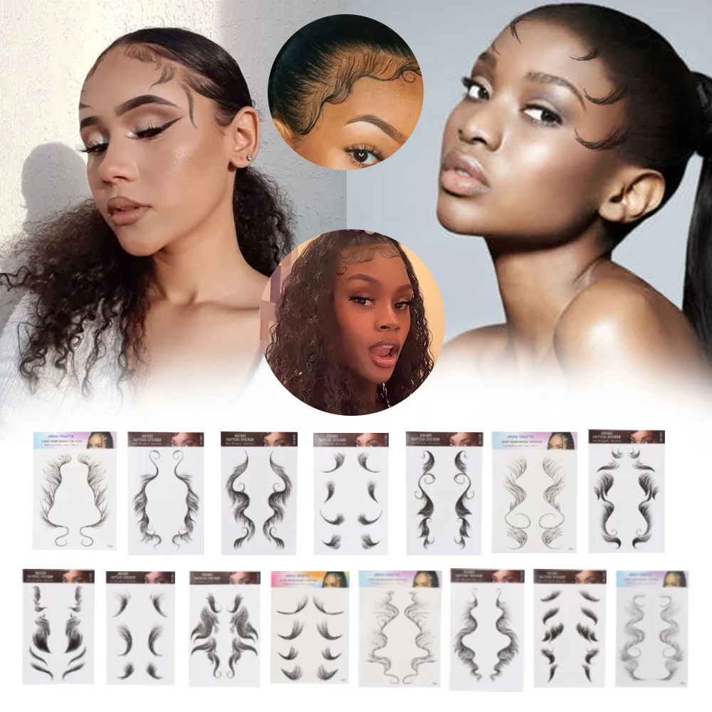1 шт. детскими волосами Временные татуировки Стикеры "сделай сам", натуральные вьющиеся волосы для края долговечностью Водонепроницаемый жестокость Бесплатная легко наносится шаблон