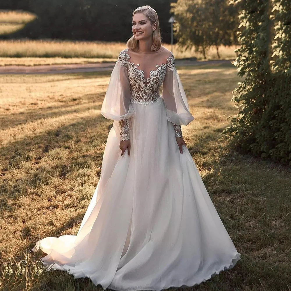 Одежда с длинным рукавом Иллюзия из кружева, с v-образным вырезом, свадебное платье пляжное шифоновое платье с открытой спиной размера плюс принцессы длинное свадебное платье индивидуальный заказ