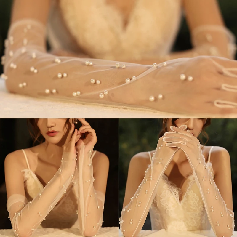 Длинные прозрачные тюлевые перчатки, свадебные перчатки для невесты...