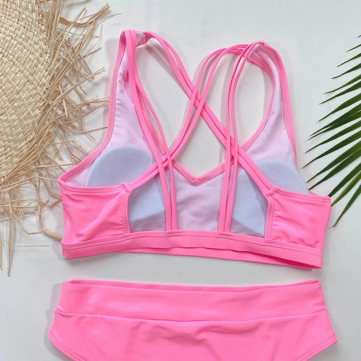 Бикини с высокой талией, комплект бикини пуш-ап, ярко-розовый женский купальник, женский купальный костюм, пляжная одежда, купальный костюм, бикини, 2021