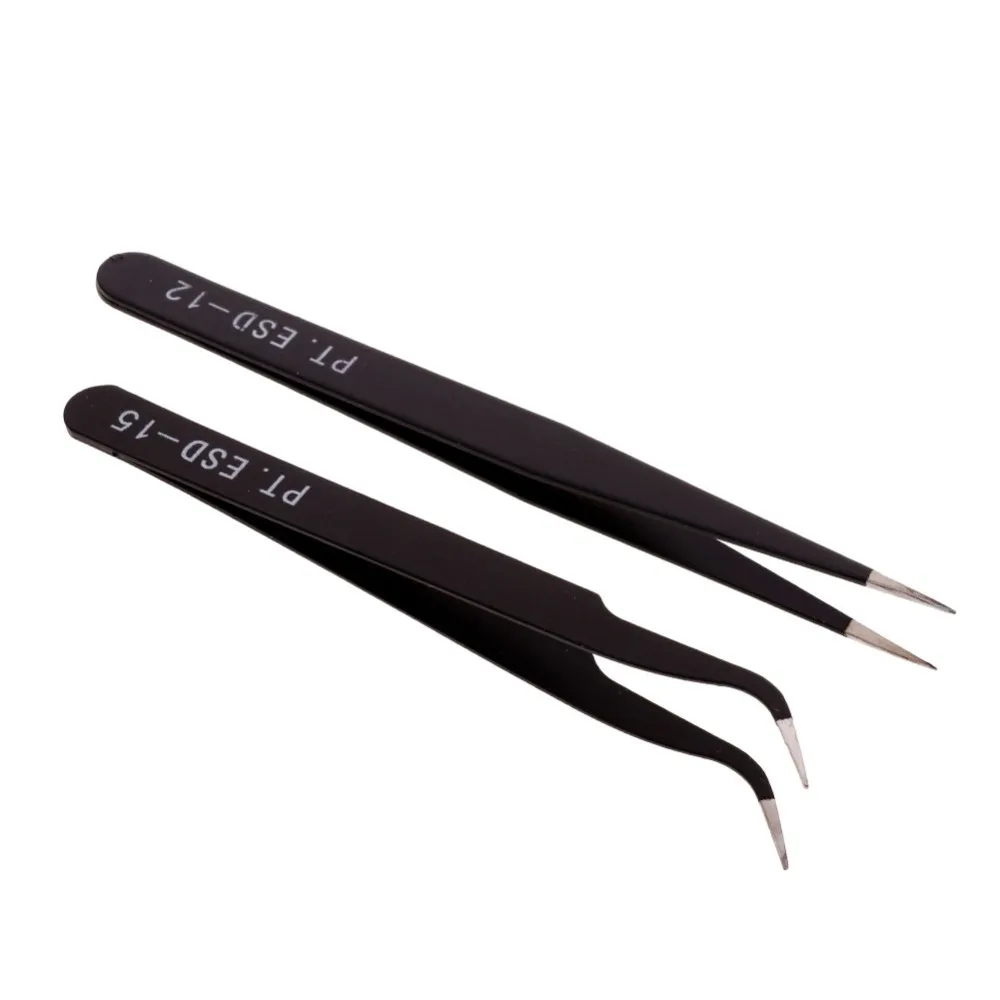 2 шт.компл. антистатические щипцы с прямым кончиком, набор точных пинцетов для пайки, электронные пинцеты ESD, Прямая поставка