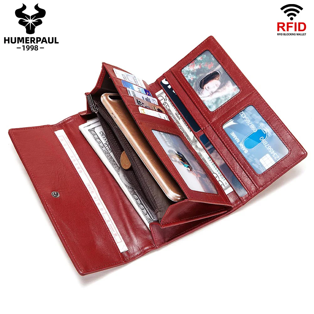 Женский кошелек из натуральной кожи, длинный бумажник с блокировкой RFID, чехол для мелочи, Обложка для паспорта большой вместимости, кредитница