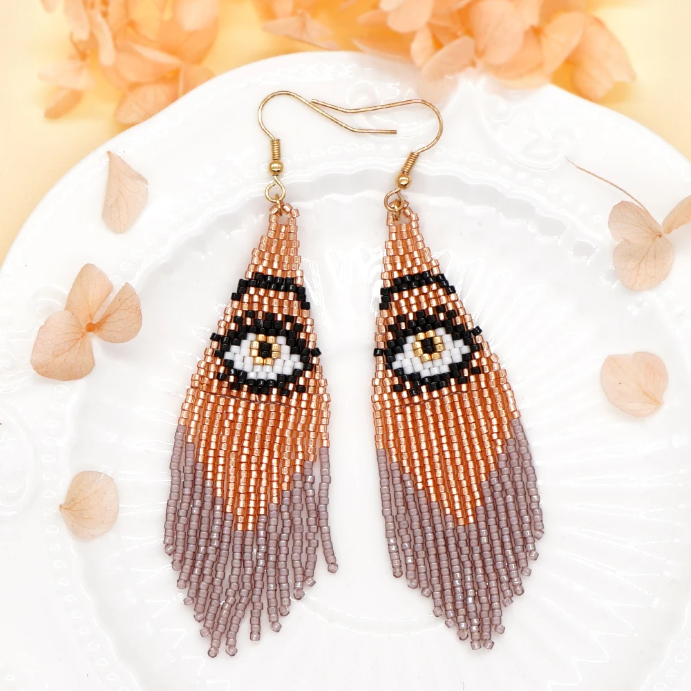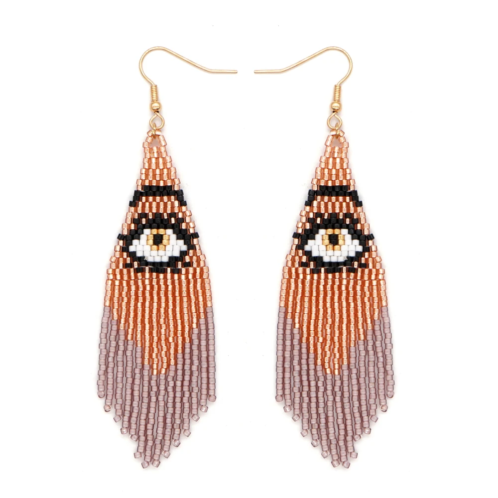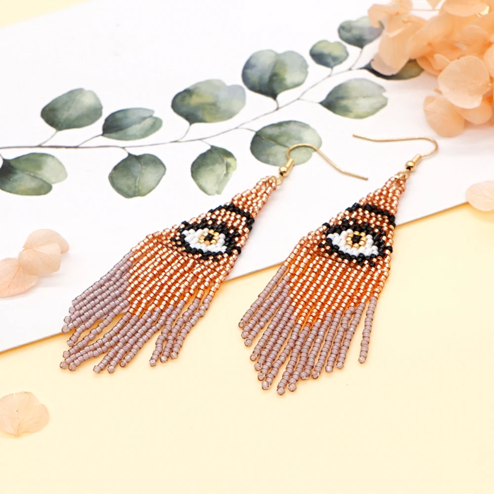 Женские серьги с бахромой Go2boho, коллекция Турецкий Дурной глаз, серьги-кольца с бисером, ювелирные изделия