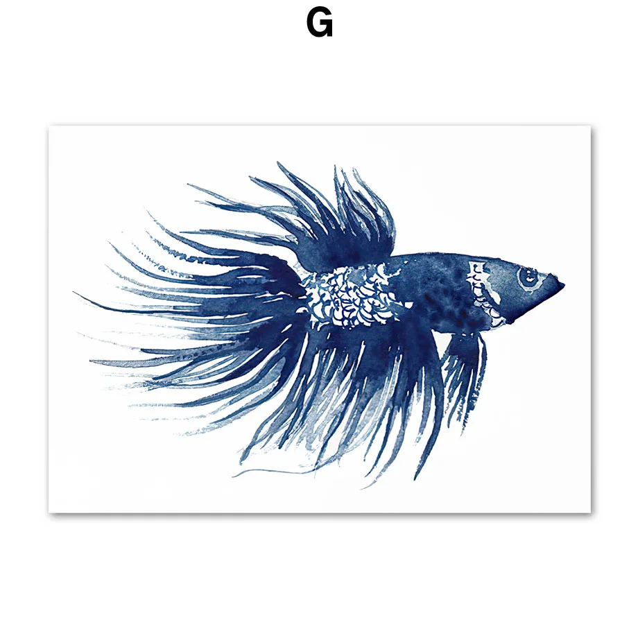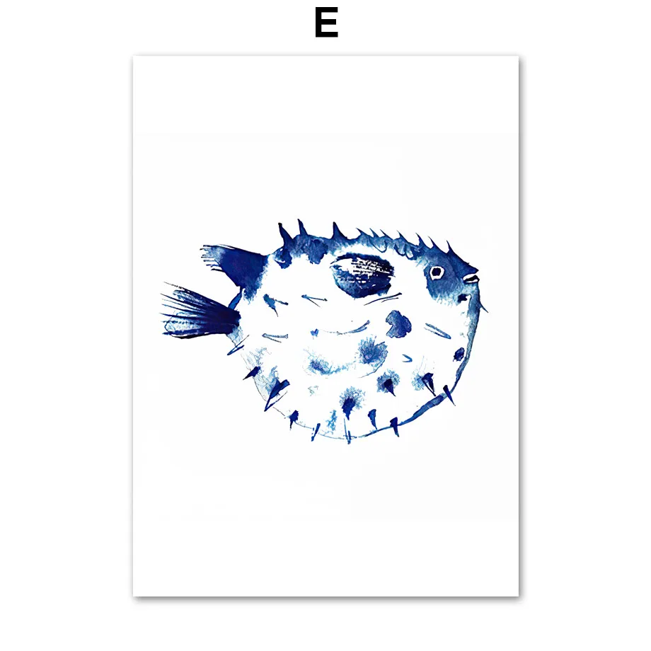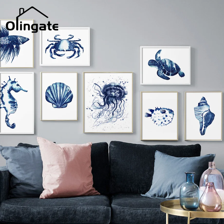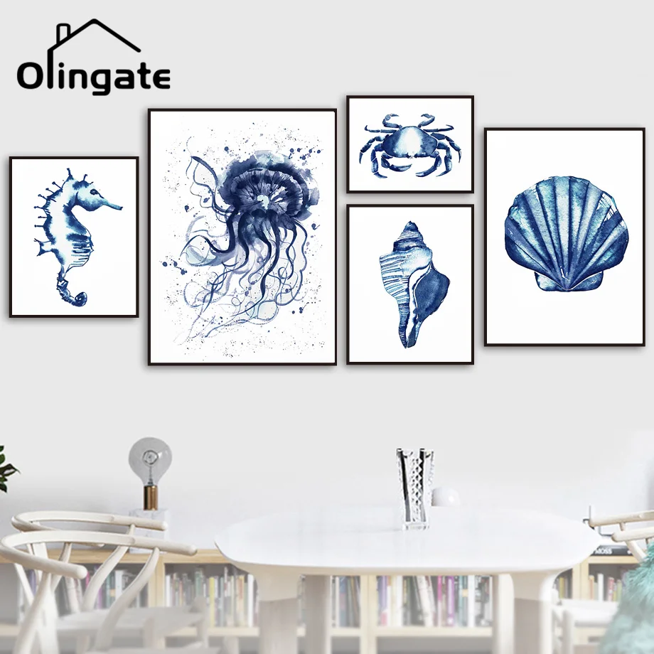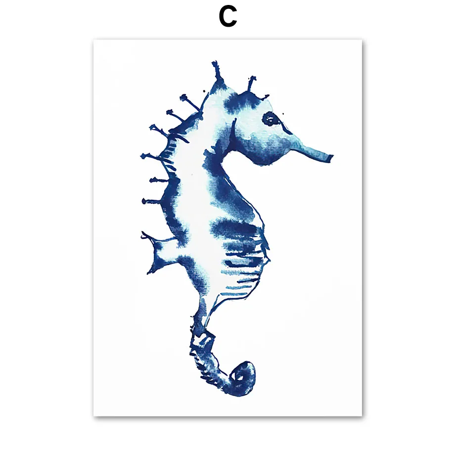 Синий океан, существо, холст, плакат, милая морская лошадь, медуза, стена, искусство, картина, цельный холст, живопись, искусство