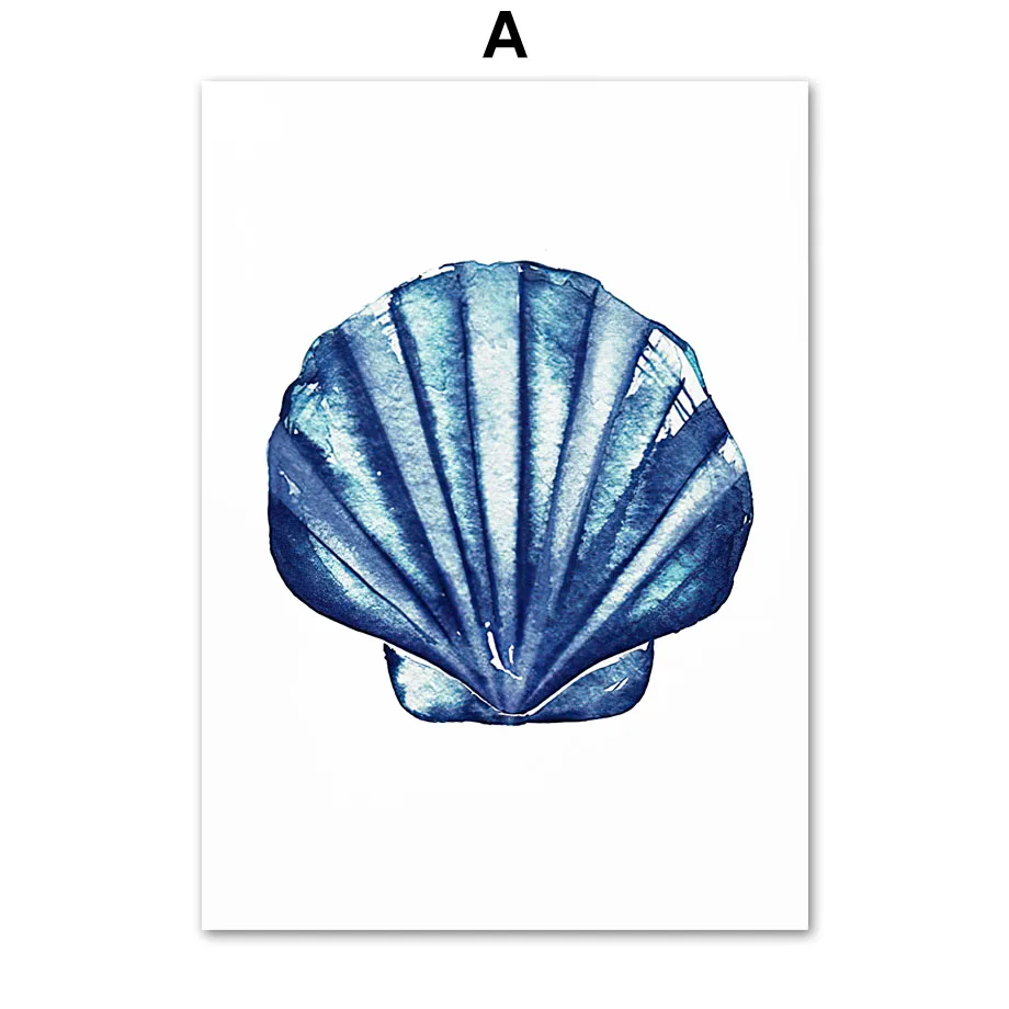 Постер на холсте природа пляж морское искусство акварель синий океа...