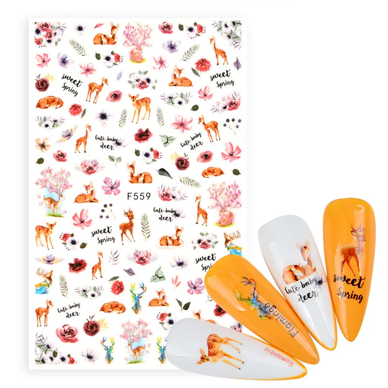 1 шт. Весенняя наклейка для ногтей и наклейка Цветы Листья дерево зеленые животные Простой летний слайдер сделай сам для маникюра дизайн ногтей