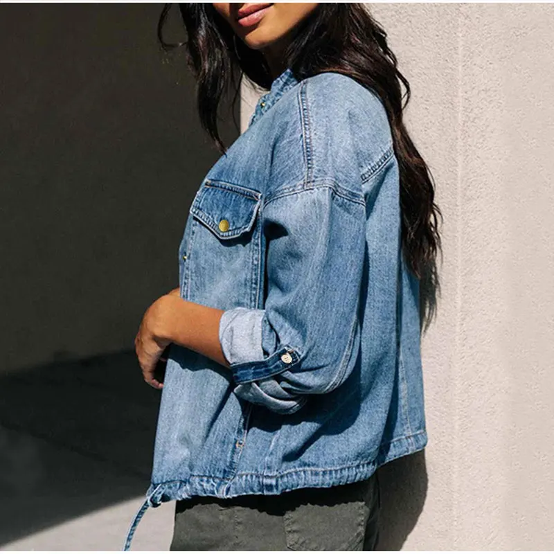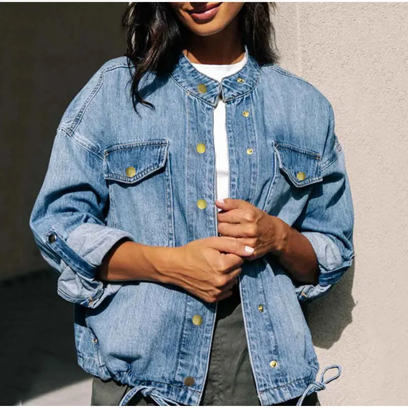 Куртка джинсовая женская с круглым вырезом, свободная верхняя одежда из денима, с длинными рукавами, в стиле Харадзюку, XL, осень-весна размера плюс