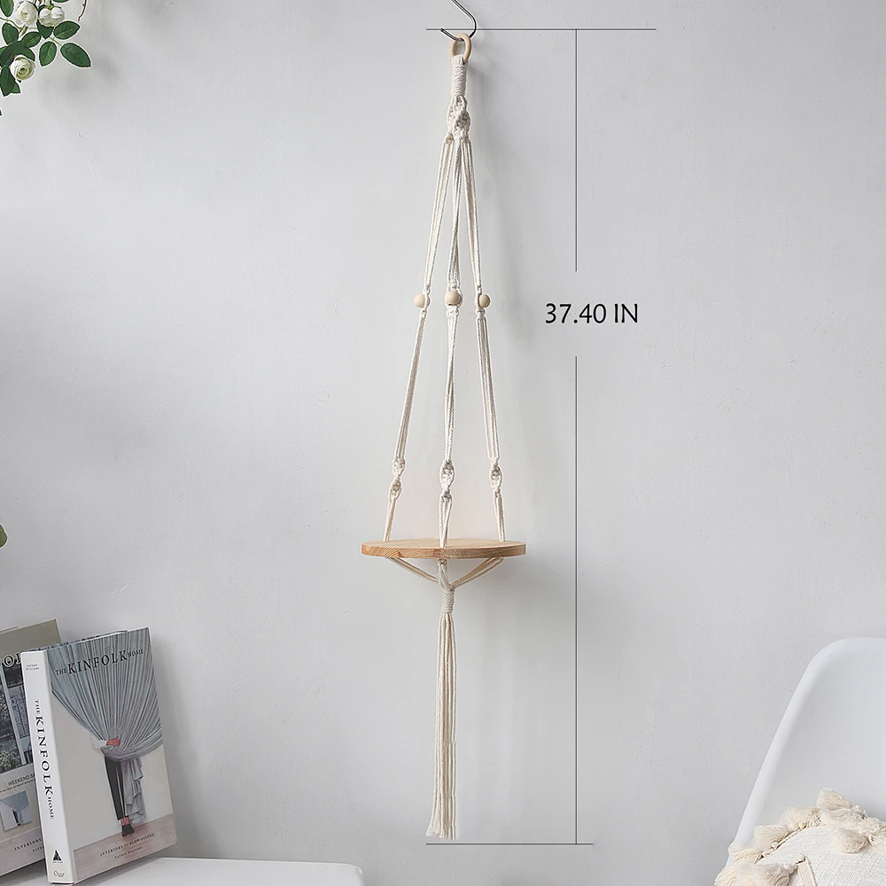 5. Размер: Этот макраме висит около 26 "в высоту, деревянная полка около 12" x 12 "x 0,9".