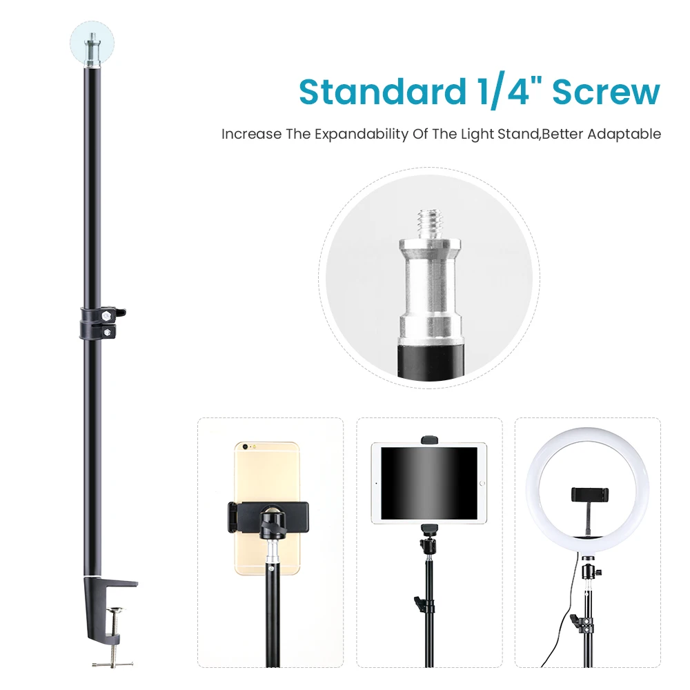 1. Регулируемая подставка: высота стойки может регулироваться от 38 см до 66 см/15 дюймов до 26 дюймов; Это удобная подставка под светильник; 2. Стандартный 1/4 дюйма Винт: разработан с Стандартный 1/4 дюймовой Болтовой, Поддержка наиболее фотографии светильник ing оборудования, таких как, кольцо, светильник, светодиодный видео светильник, держатель для телефона, Dslr камеры и т. Д. 3. Стабильный и прочный: Изготовлен из алюминиевого сплава, который обеспечивает длительное использование без ржавчины, что делает его сильным для тяжелой работы и предотвращения деформации 4. Регулируемый зажим для крепления стола: зажим регулируется для установки различных столов с помощью регулировки ручки и винта. Зажим может поддерживать толщину стола 5 см 5. Широкое применение: Этот настольный светильник с регулируемой высотой отлично подходит для крепления на кольцевой светильник, камеру, смартфон, видео светильник и т. д., который может идеально использоваться в макияже, интервью, светильник ing, прямая трансляция, видеосъемка
