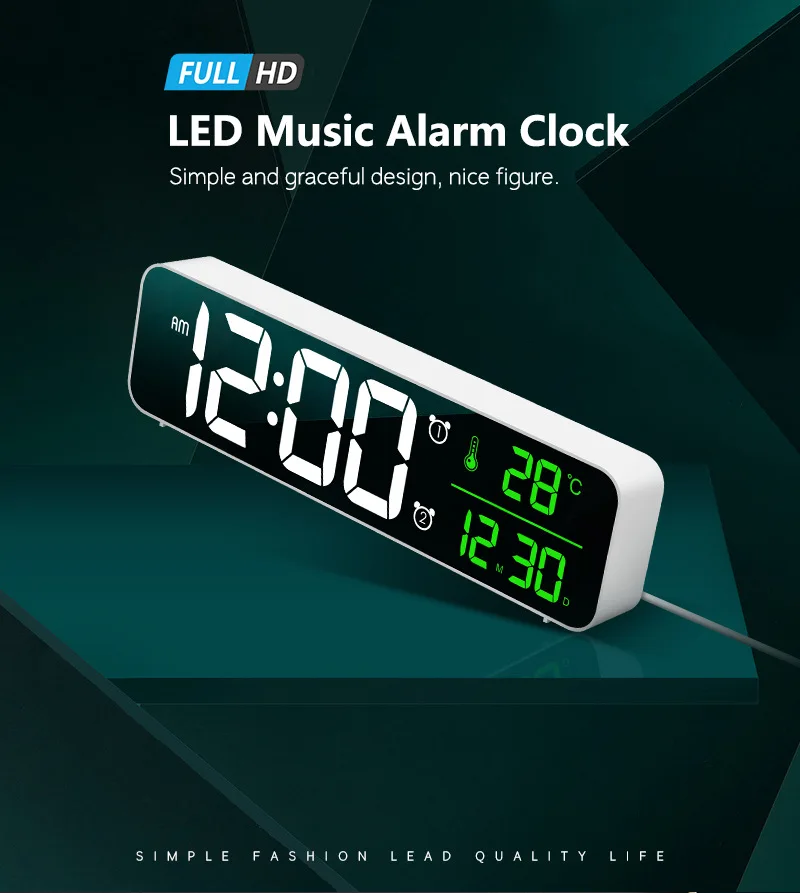 Светодиодный цифровой будильник, голосовое управление, Цифровая музыка, Многофункциональный Будильник с повтором сигнала, электронные настенные часы с питанием от Usb