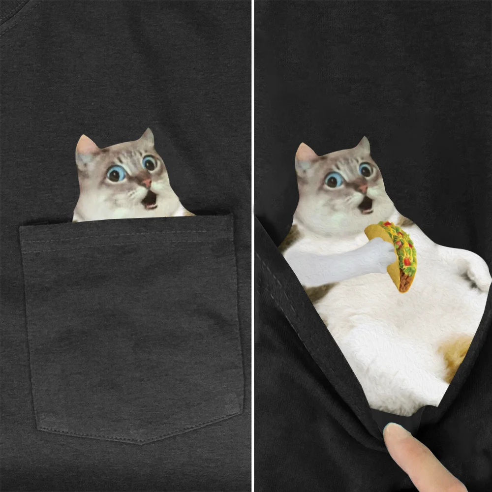 Футболка CLOOCL с карманами, летняя забавная теннисная Футболка с принтом кошки, мужские и женские Рубашки, Топы, забавные хлопковые черные футболки