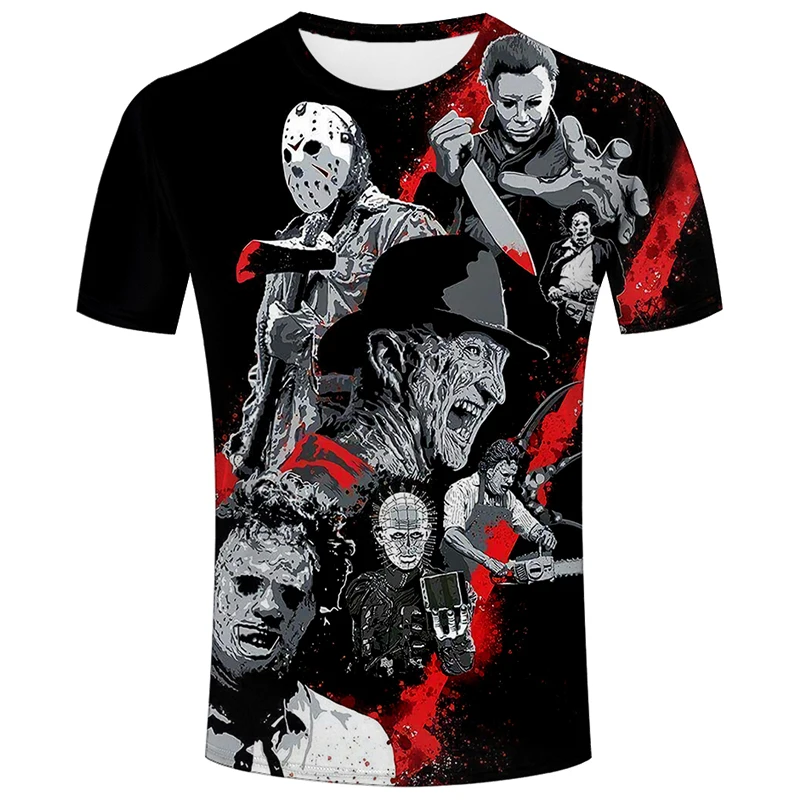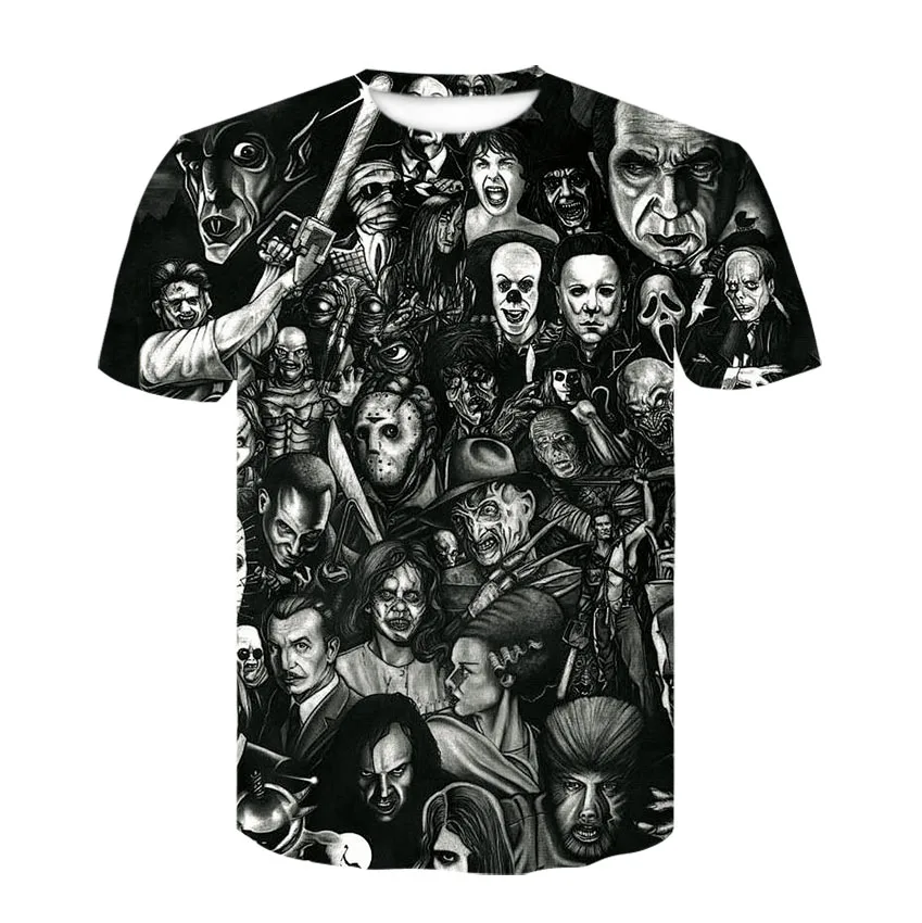 Футболка с коротким рукавом для мальчиков и женщин, черная уличная футболка в стиле хип-хоп, с 3D принтом из фильма ужасов, клоуна, Мужская футболка с рисунком