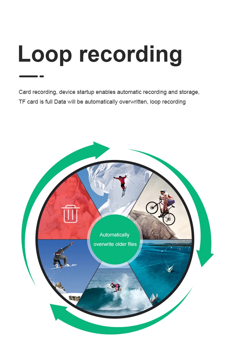 Мини-камера HD★1920x1080P и 1280x720P Высокое разрешение на выбор, заводские настройки 1280x720P. Циклическая запись★Поддерживает карты micro SD 32GB (не входят в комплект); С функцией циклической записи вы не прекратите запись проблем, когда SD-карта заполнена. Поддержка обнаружения движения★Отличный выбор для использования в качестве видеорегистратора. Портативный-легкий★Вес всего 100 грамм, вы можете закрепить сумку/чехол на месте, его также можно прикрепить к держателю камеры. Мини-камера для видеозаписи, деловых встреч, путешествий, спорта; Автомобильная камера для вождения; Видеокамера для дома и офиса; Нательная камера для работы.