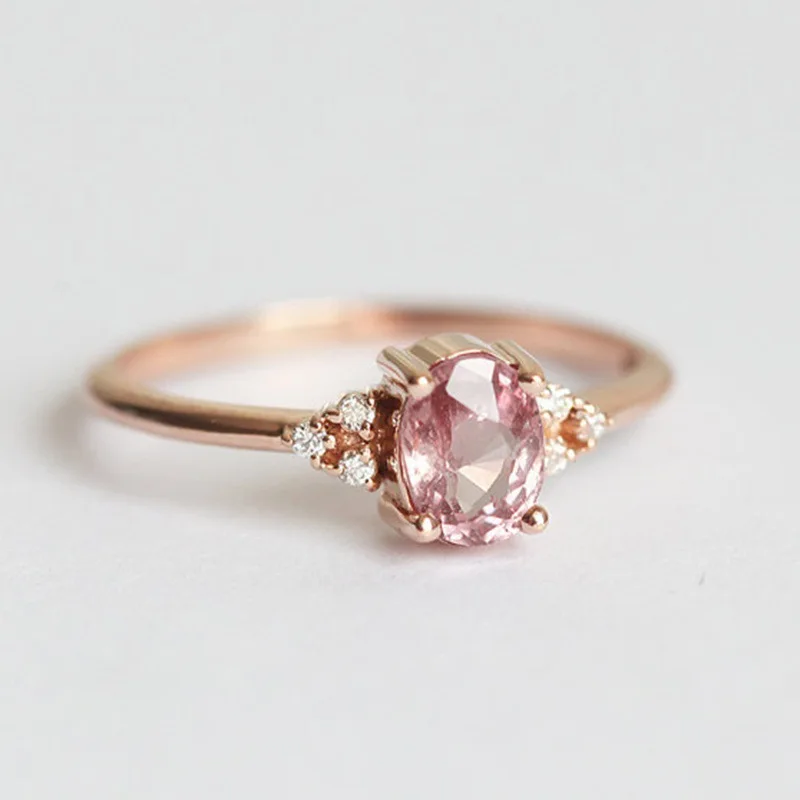 Французское изящное розовое кольцо с овальным кристаллом для женщин, простое обручальное кольцо в богемном стиле, женские модные обручальные кольца, ювелирные изделия