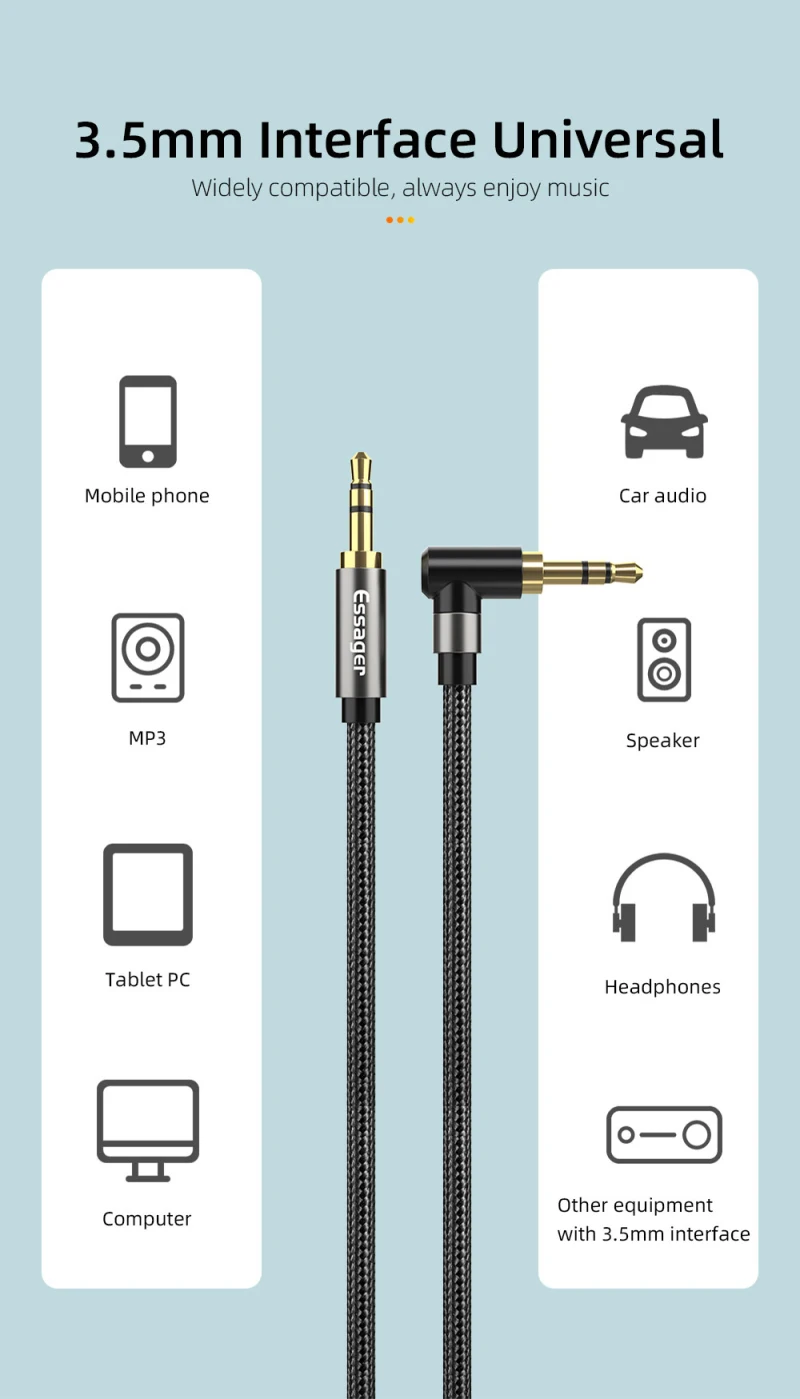 3.3.5 мм три секции с позолоченным разъемом, высокими антиокислительными свойствами, также улучшает качество звука, универсальный 3,5 мм Интерфейс