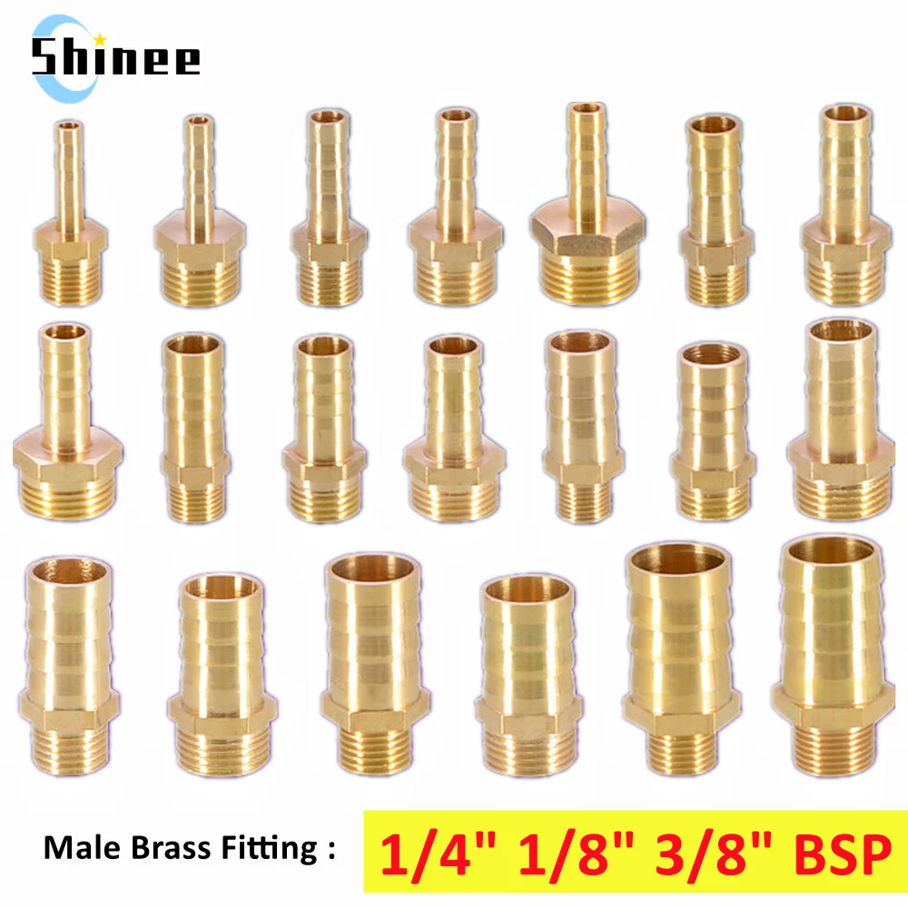Латунный штуцер для трубы 6/8/10/12/14/16 мм, хвостовик для шланга 1/8 "3/8" 1/4 ", наружная резьба BSP, соединительный медный переходник