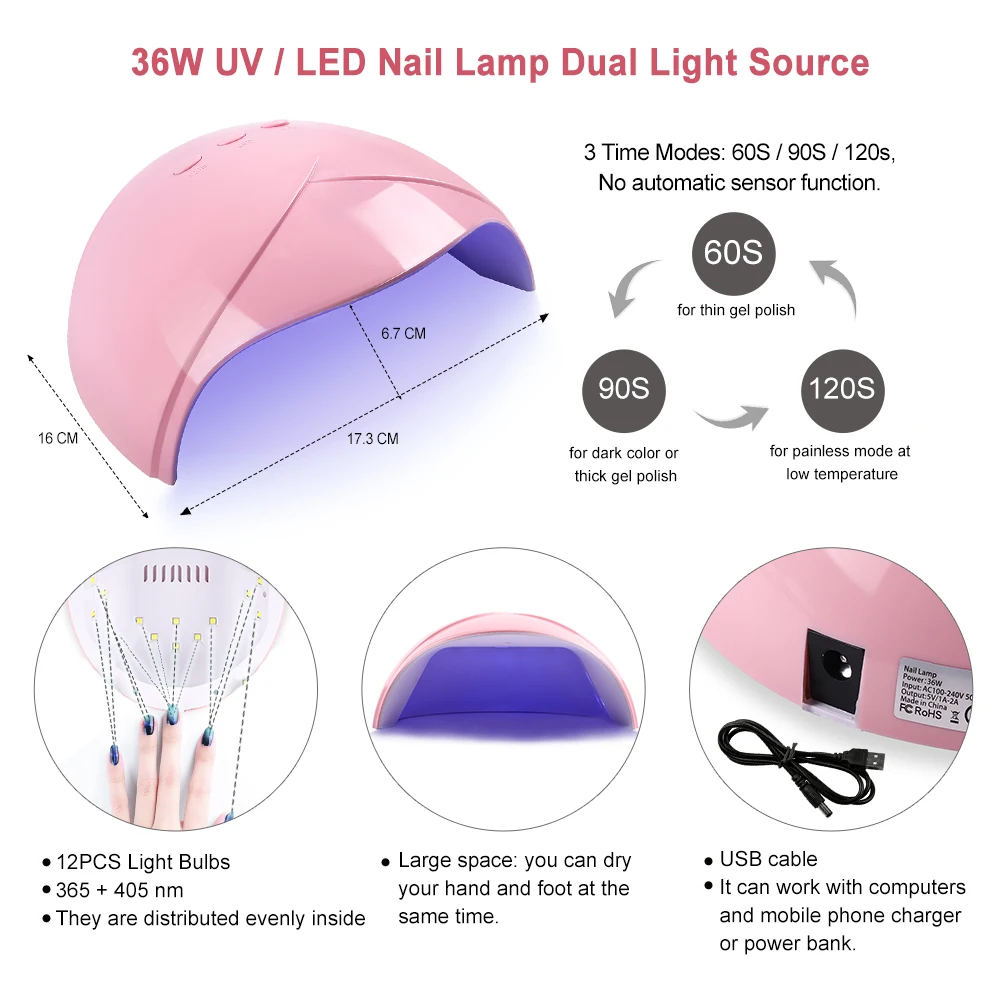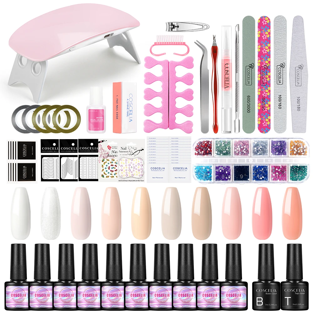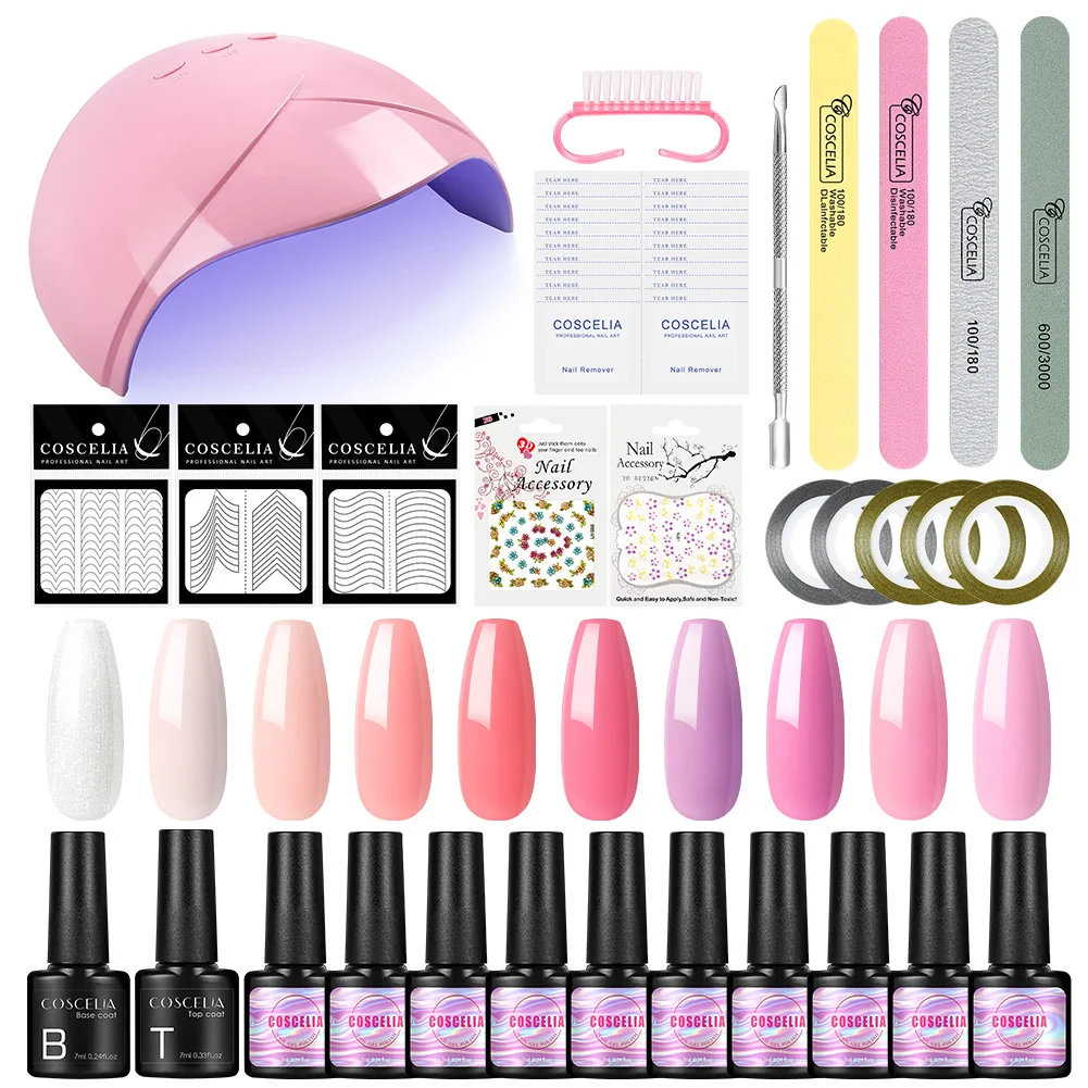 Набор для ногтей COSCELIA, Гель-лак для ногтей, ультрафиолетосветодиодный лампа, сушилка с 10 штуками бытового дизайна, набор для маникюра, инструменты для дизайна ногтей