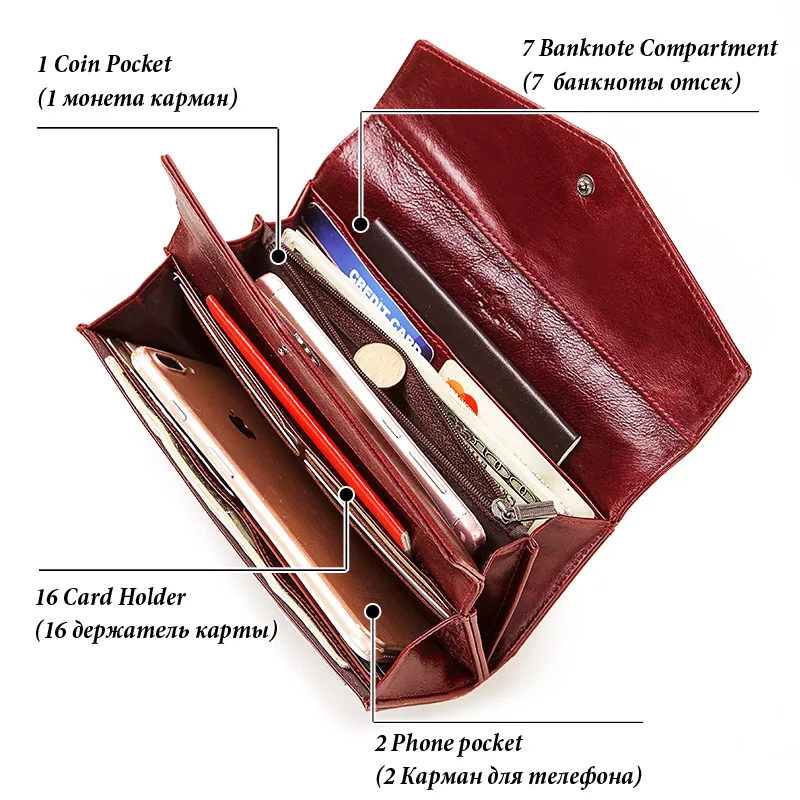 Кошелек женский из коровьей кожи, с отделением для монет и карт