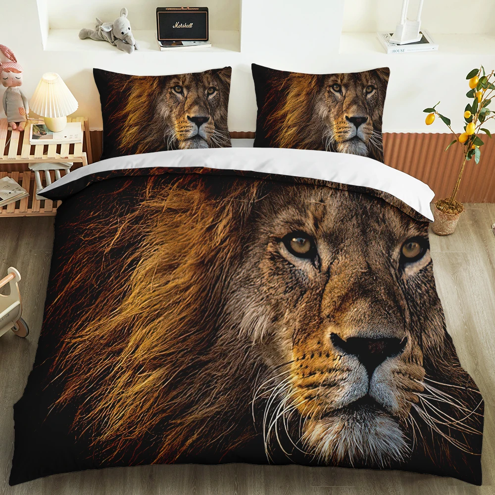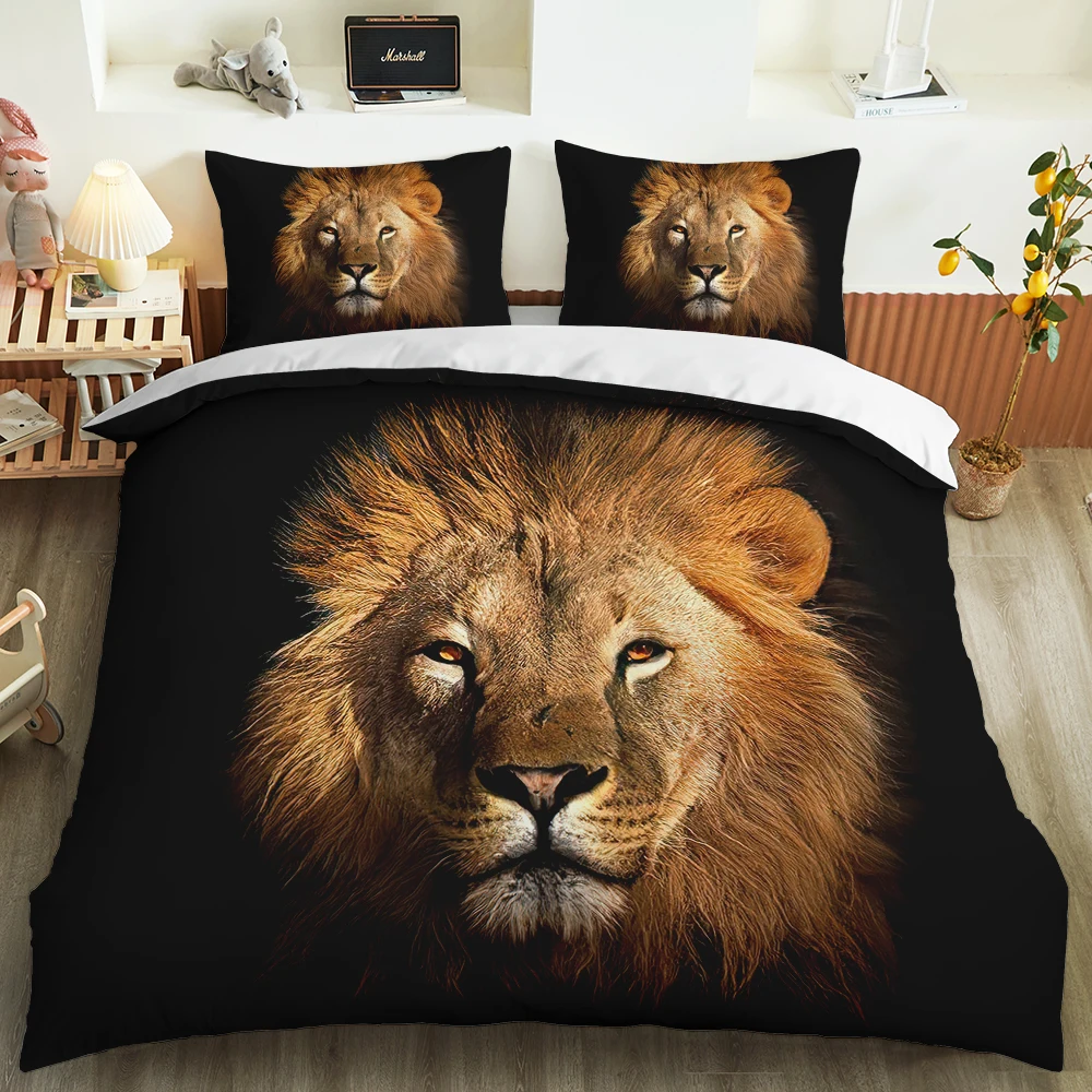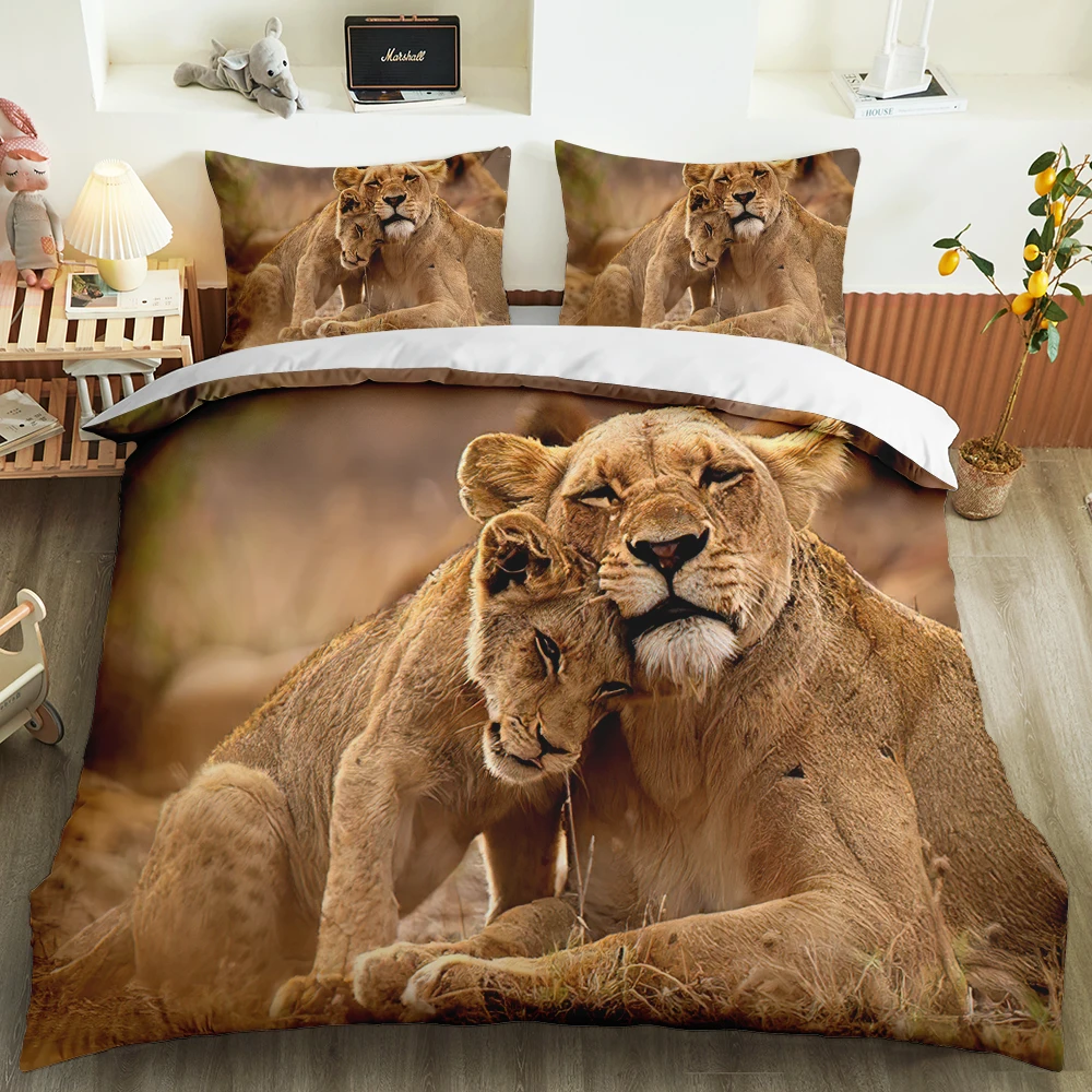 Комплект для односпальной кровати Queen King, с 3D-принтом в джунглях, дикие животные, Лев, наволочка, пододеяльник, украшение для спальни