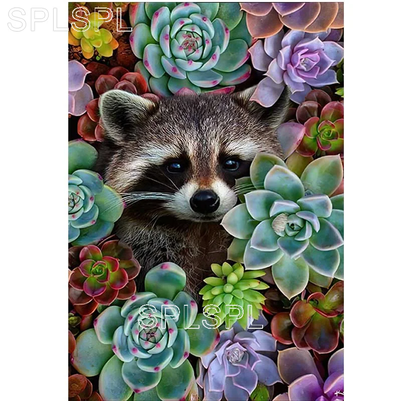 Алмазная живопись, животные, цветок, енот, алмазная круглая Алмазная мозаика, настраиваемое настенное украшение для гостиной