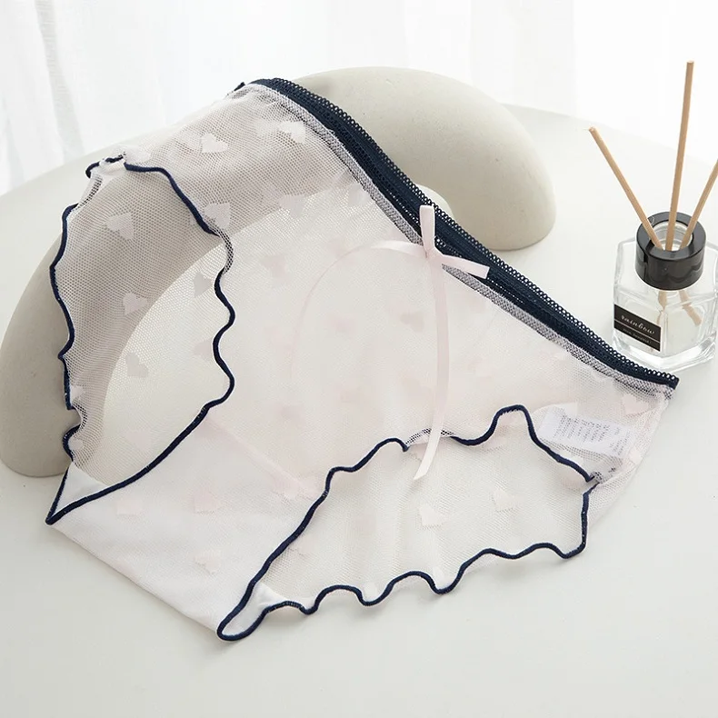 Женское сексуальное кружевное нижнее белье с заниженной талией, трусики с бантом, дышащие прозрачные сетчатые трусики, трусики для девочек, нижнее белье