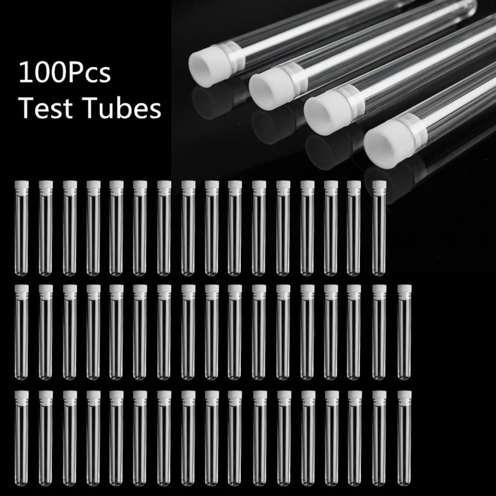100 шт.Новая высококачественная пластиковая пробирка 12 мм * 100 мм прозрачная пластиковая пробирка с крышкой лабораторные принадлежности