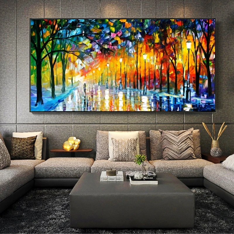 Абстрактный пейзаж, Масляные картины на холсте с ножом, современные красивые улицы на осень для дома, спальни, настенные картины